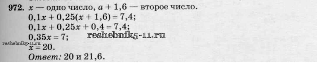 Готовая домашняя работа с ответами по Математике за 6 класс Зубарева, Мордкович Учебник Мнемозина 2015 ФГОС - Упражнения 972