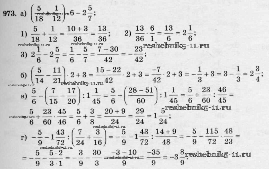 Готовая домашняя работа с ответами по Математике за 6 класс Зубарева, Мордкович Учебник Мнемозина 2015 ФГОС - Упражнения 973