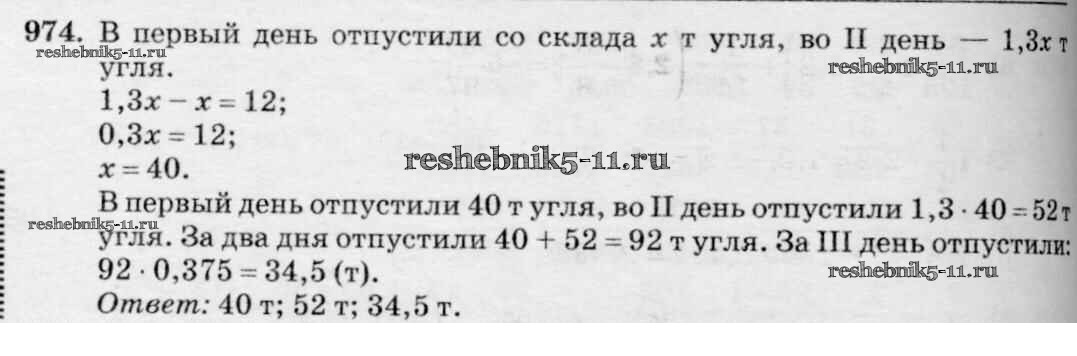 Готовая домашняя работа с ответами по Математике за 6 класс Зубарева, Мордкович Учебник Мнемозина 2015 ФГОС - Упражнения 974
