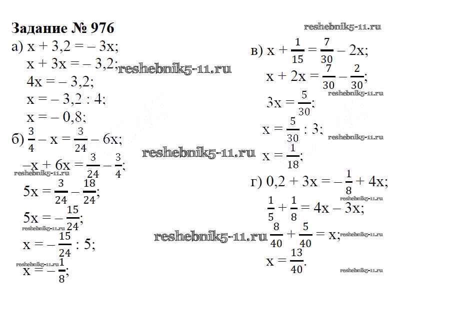 Готовая домашняя работа с ответами по Математике за 6 класс Зубарева, Мордкович Учебник Мнемозина 2015 ФГОС - Упражнения 976