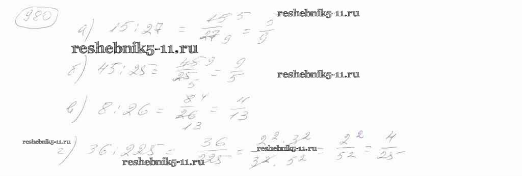 Готовая домашняя работа с ответами по Математике за 6 класс Зубарева, Мордкович Учебник Мнемозина 2015 ФГОС - Упражнения 980