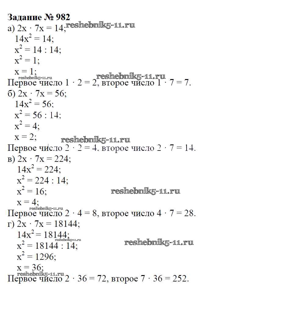 Готовая домашняя работа с ответами по Математике за 6 класс Зубарева, Мордкович Учебник Мнемозина 2015 ФГОС - Упражнения 982