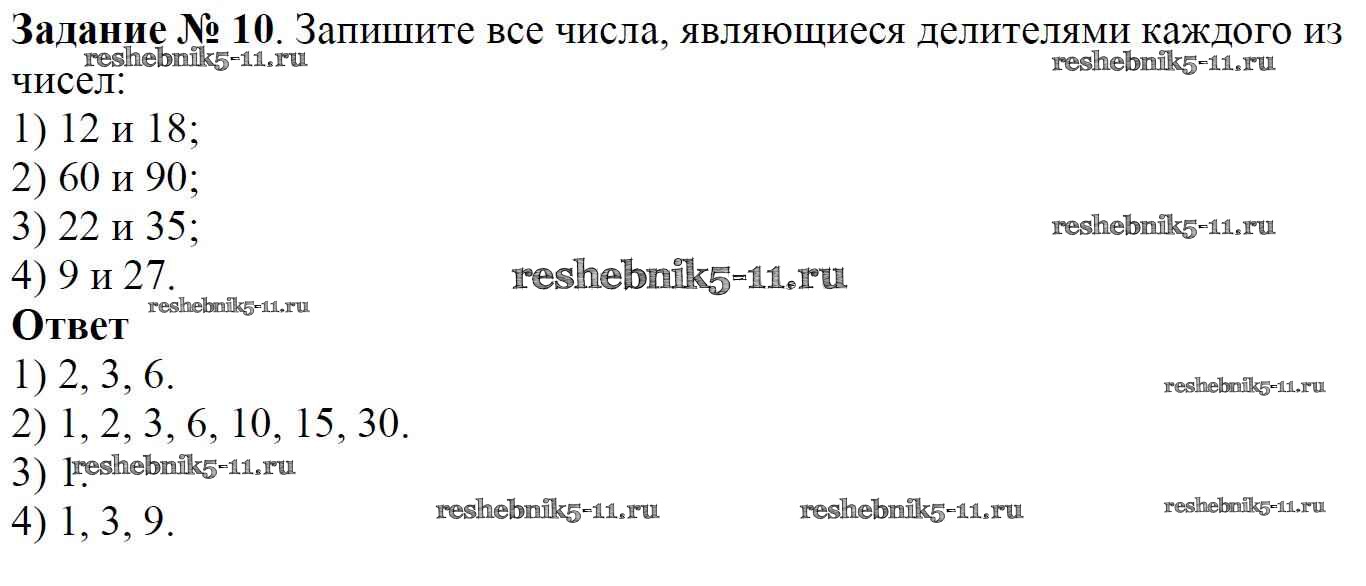 Готовая домашняя работа с ответами по Математике за 6 класс Мерзляк, Полонский, Якир Учебник Алгоритм успеха Вентана-граф 2016 ФГОС - Глава 1. Делимость натуральных чисел (упражнения) 10