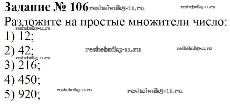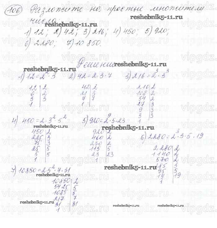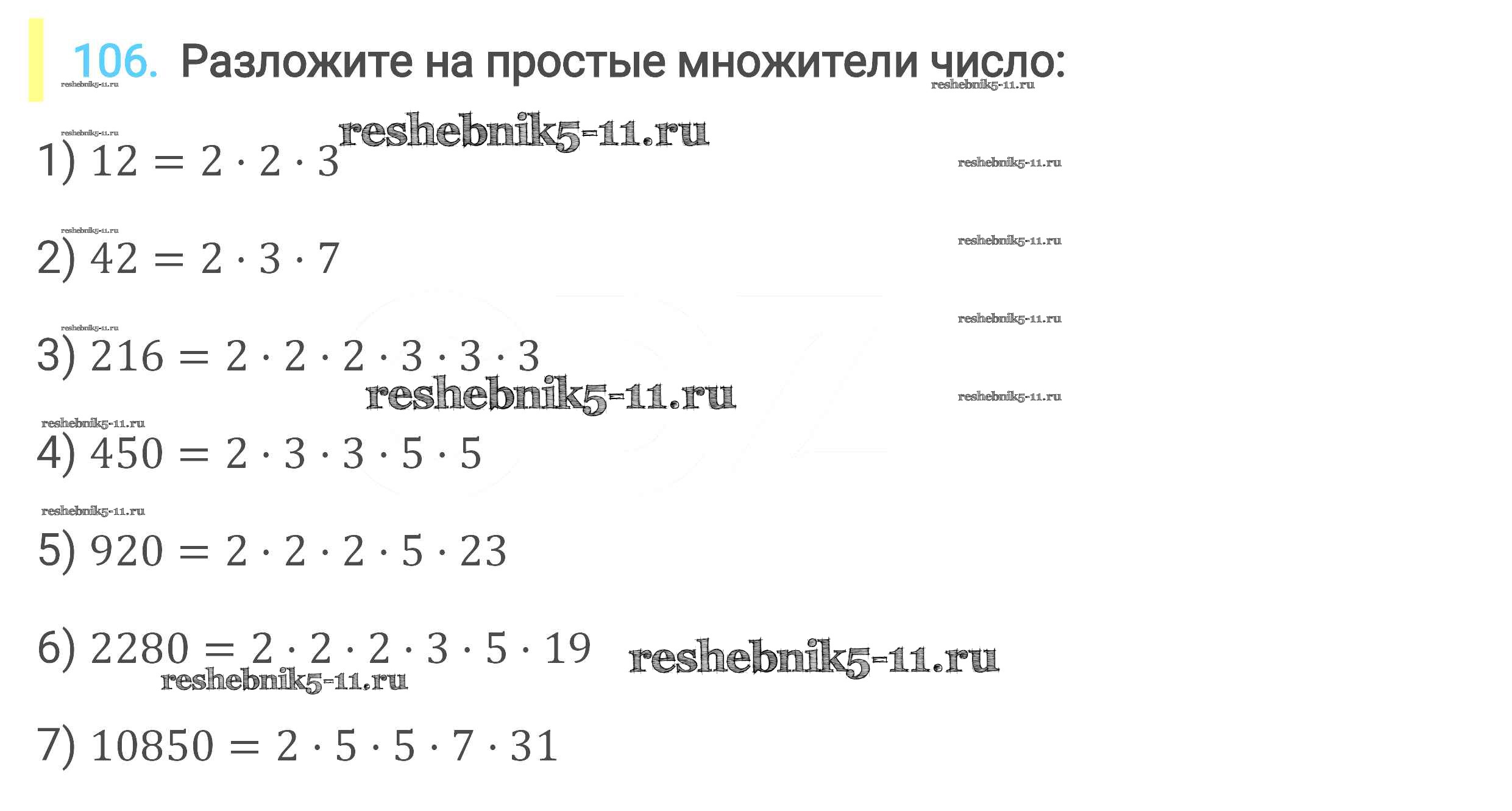 Готовая домашняя работа с ответами по Математике за 6 класс Мерзляк, Полонский, Якир Учебник Алгоритм успеха Вентана-граф 2016 ФГОС - Глава 1. Делимость натуральных чисел (упражнения) 106