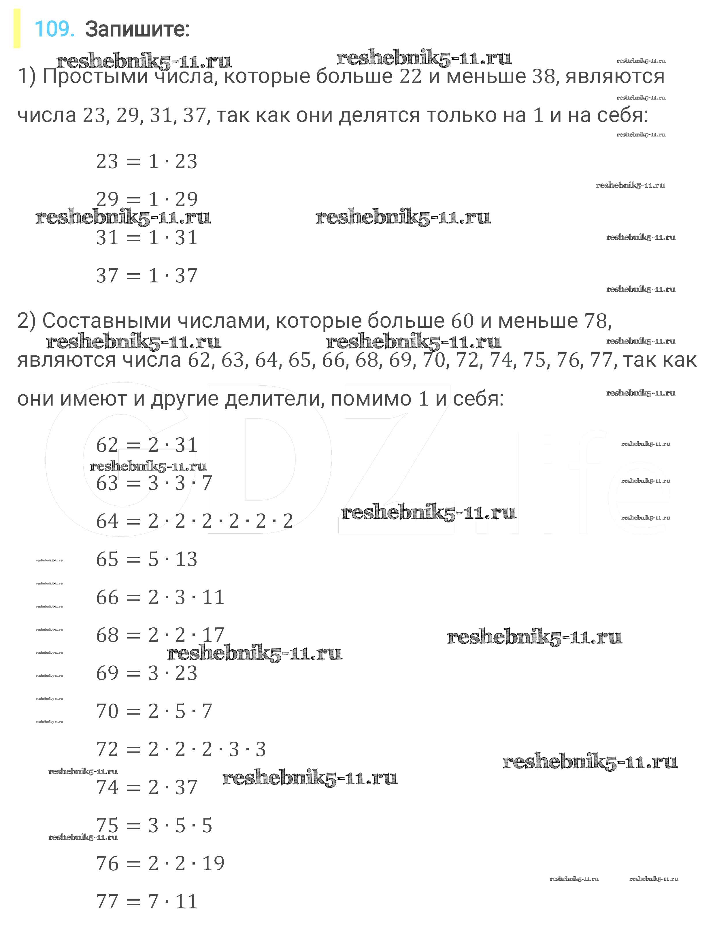Готовая домашняя работа с ответами по Математике за 6 класс Мерзляк, Полонский, Якир Учебник Алгоритм успеха Вентана-граф 2016 ФГОС - Глава 1. Делимость натуральных чисел (упражнения) 109