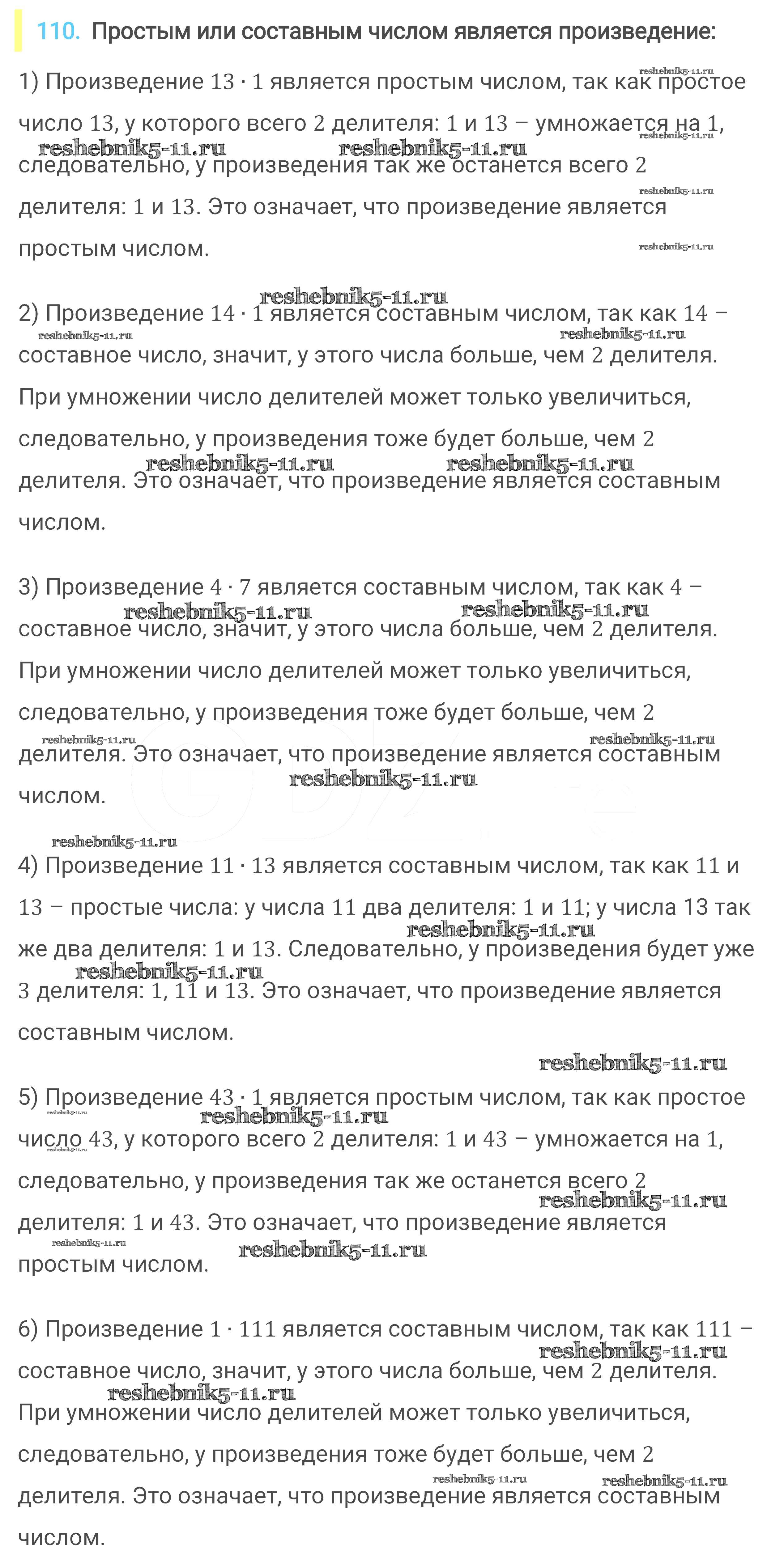 Готовая домашняя работа с ответами по Математике за 6 класс Мерзляк, Полонский, Якир Учебник Алгоритм успеха Вентана-граф 2016 ФГОС - Глава 1. Делимость натуральных чисел (упражнения) 110