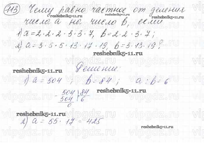 Готовая домашняя работа с ответами по Математике за 6 класс Мерзляк, Полонский, Якир Учебник Алгоритм успеха Вентана-граф 2016 ФГОС - Глава 1. Делимость натуральных чисел (упражнения) 113