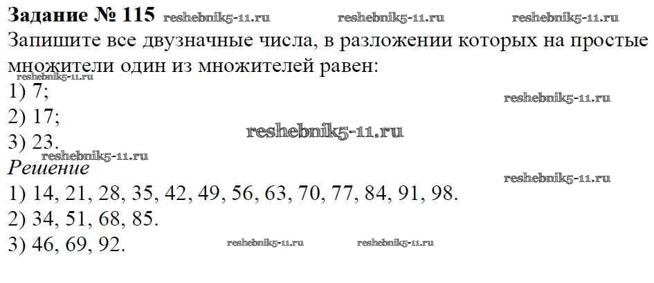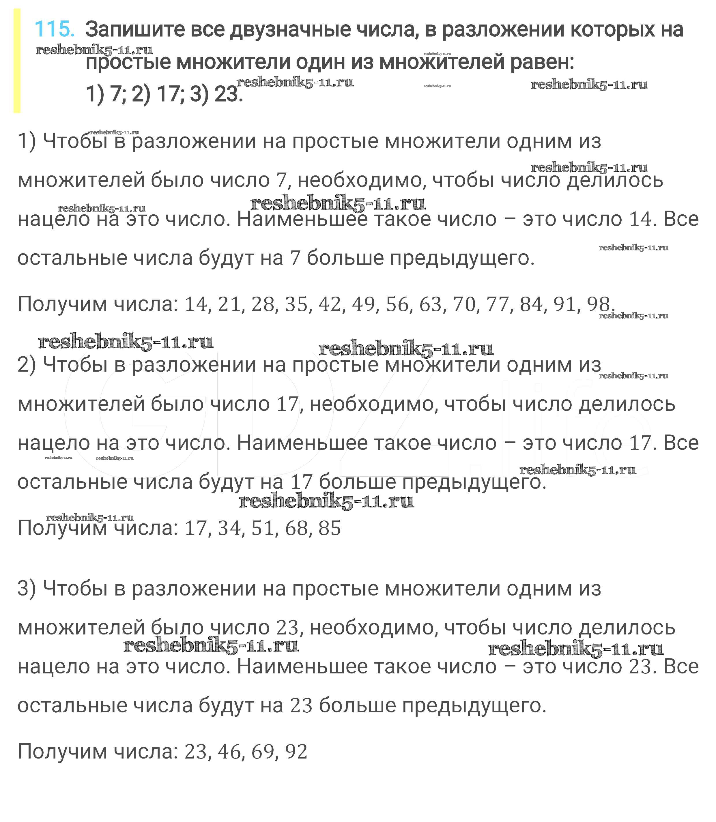 Готовая домашняя работа с ответами по Математике за 6 класс Мерзляк, Полонский, Якир Учебник Алгоритм успеха Вентана-граф 2016 ФГОС - Глава 1. Делимость натуральных чисел (упражнения) 115