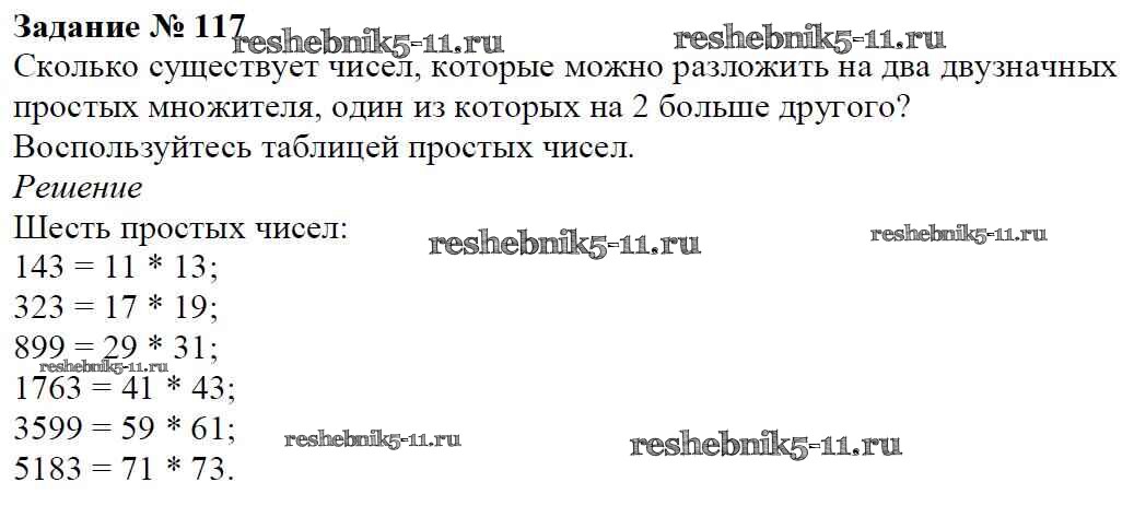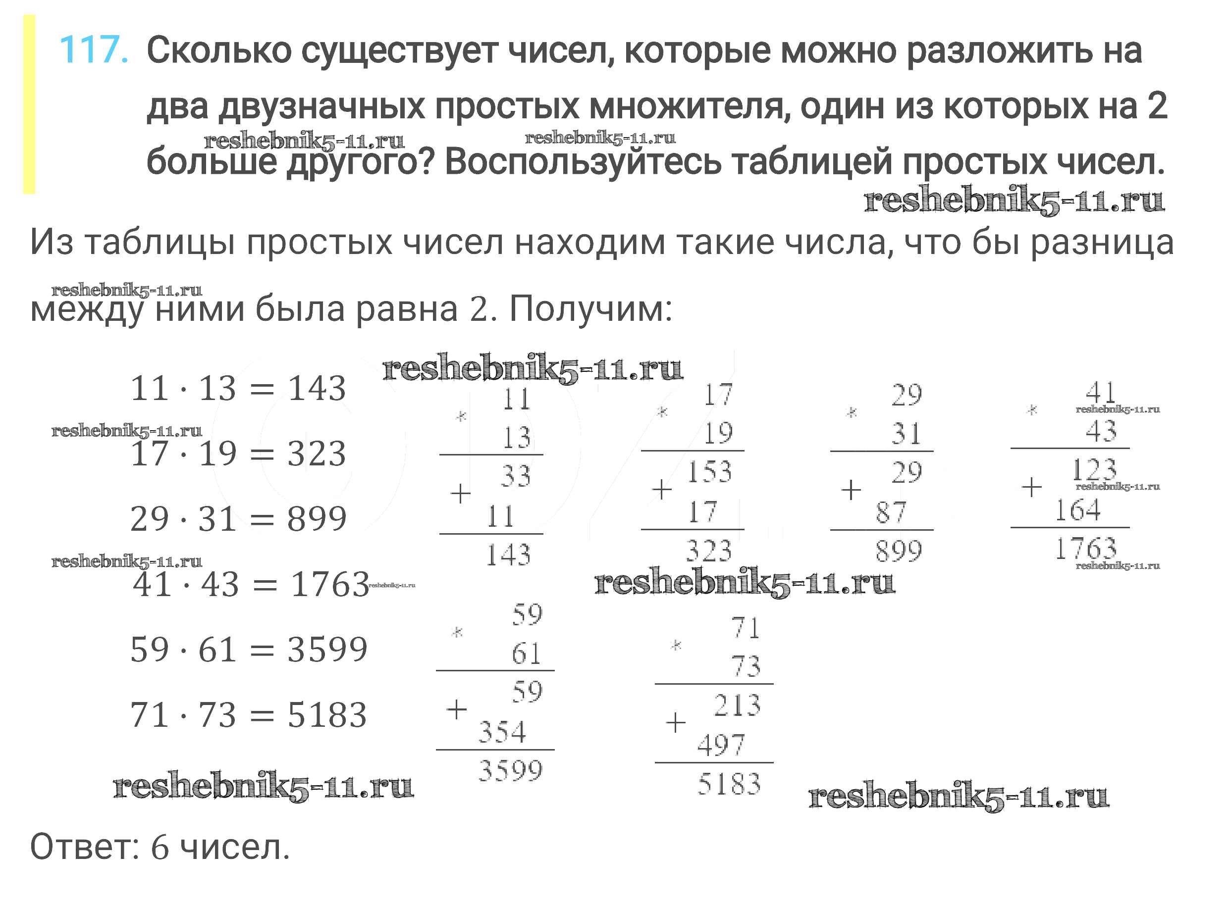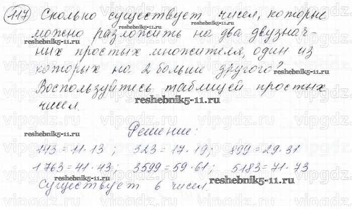 Готовая домашняя работа с ответами по Математике за 6 класс Мерзляк, Полонский, Якир Учебник Алгоритм успеха Вентана-граф 2016 ФГОС - Глава 1. Делимость натуральных чисел (упражнения) 117