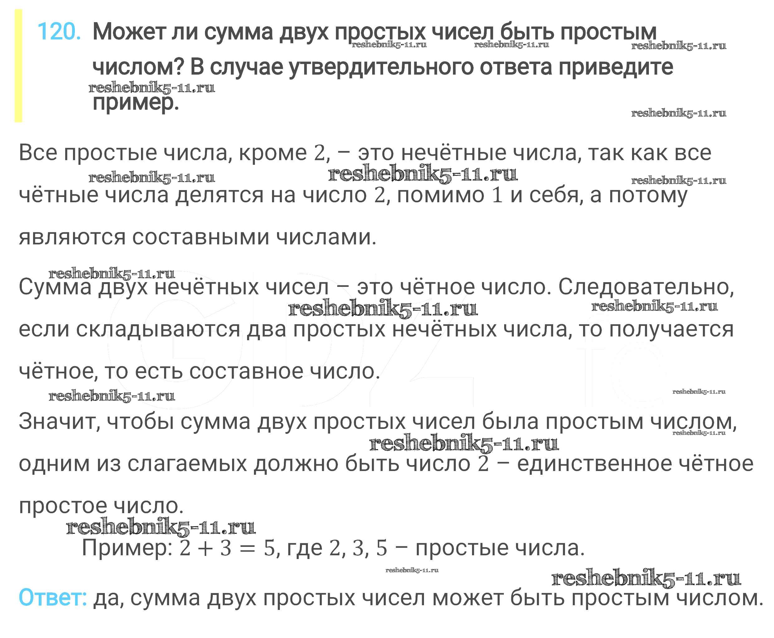 Готовая домашняя работа с ответами по Математике за 6 класс Мерзляк, Полонский, Якир Учебник Алгоритм успеха Вентана-граф 2016 ФГОС - Глава 1. Делимость натуральных чисел (упражнения) 120