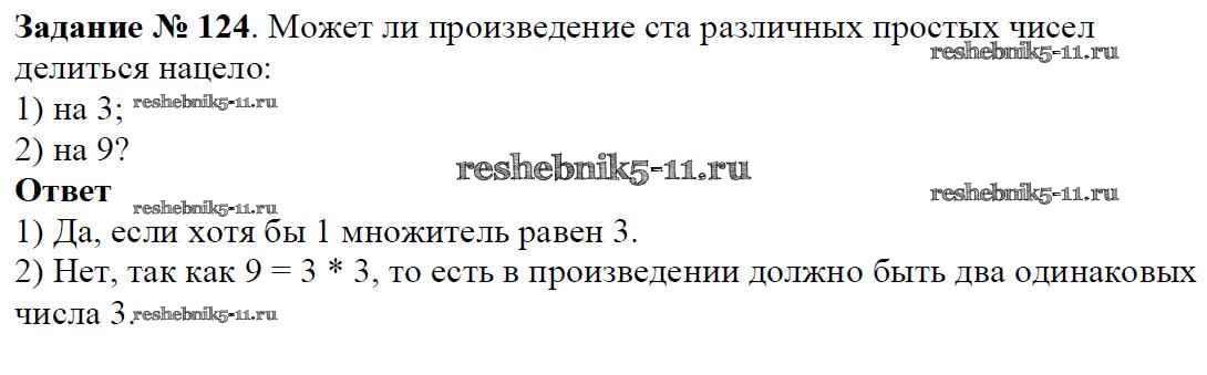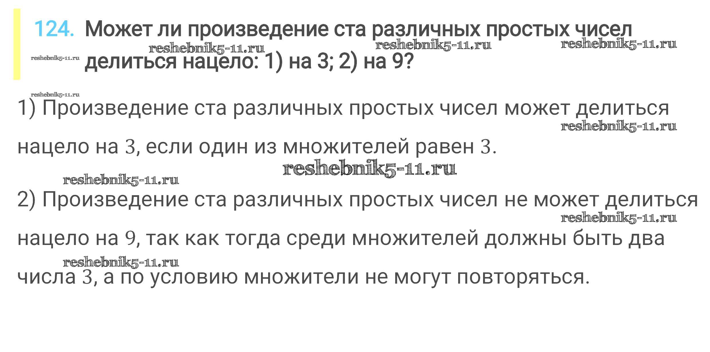 Готовая домашняя работа с ответами по Математике за 6 класс Мерзляк, Полонский, Якир Учебник Алгоритм успеха Вентана-граф 2016 ФГОС - Глава 1. Делимость натуральных чисел (упражнения) 124