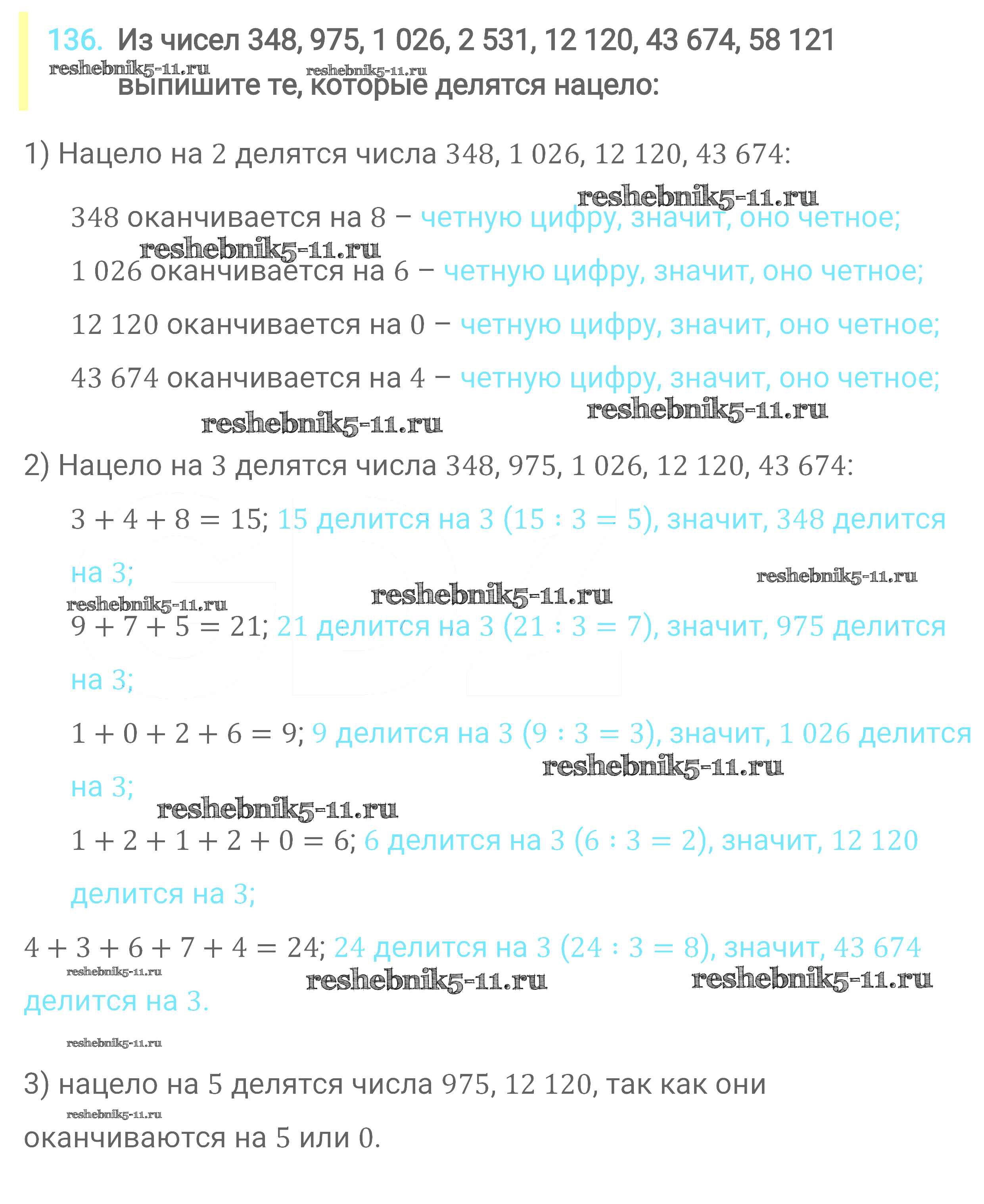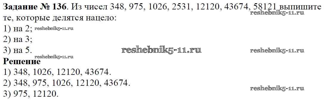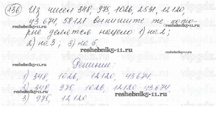 Готовая домашняя работа с ответами по Математике за 6 класс Мерзляк, Полонский, Якир Учебник Алгоритм успеха Вентана-граф 2016 ФГОС - Глава 1. Делимость натуральных чисел (упражнения) 136