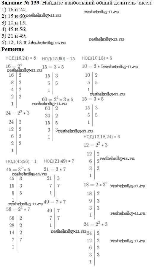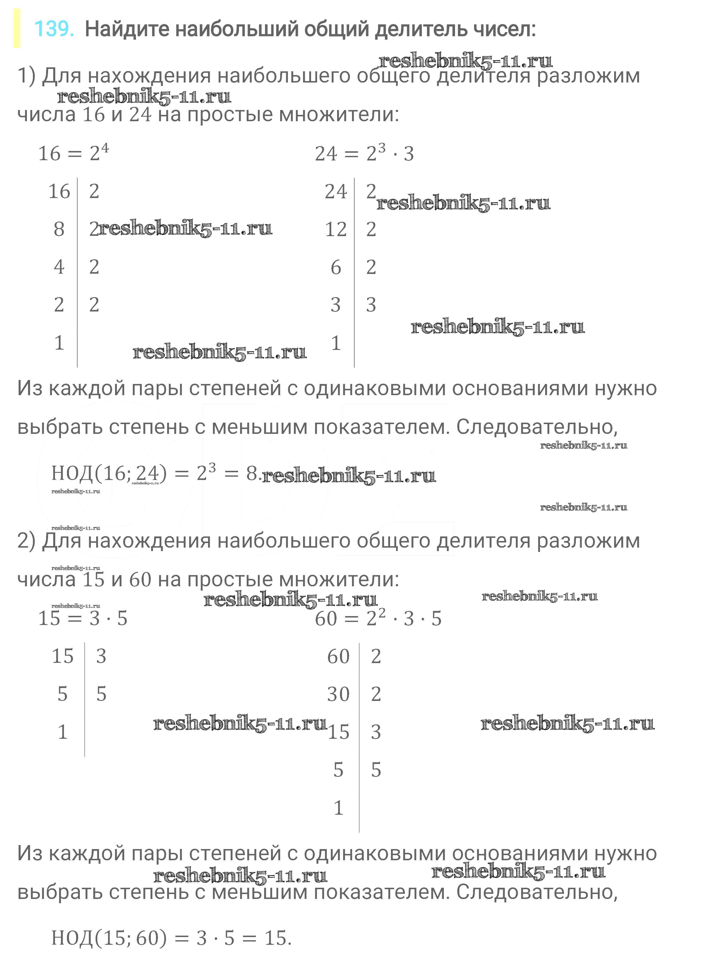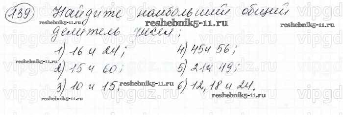Готовая домашняя работа с ответами по Математике за 6 класс Мерзляк, Полонский, Якир Учебник Алгоритм успеха Вентана-граф 2016 ФГОС - Глава 1. Делимость натуральных чисел (упражнения) 139