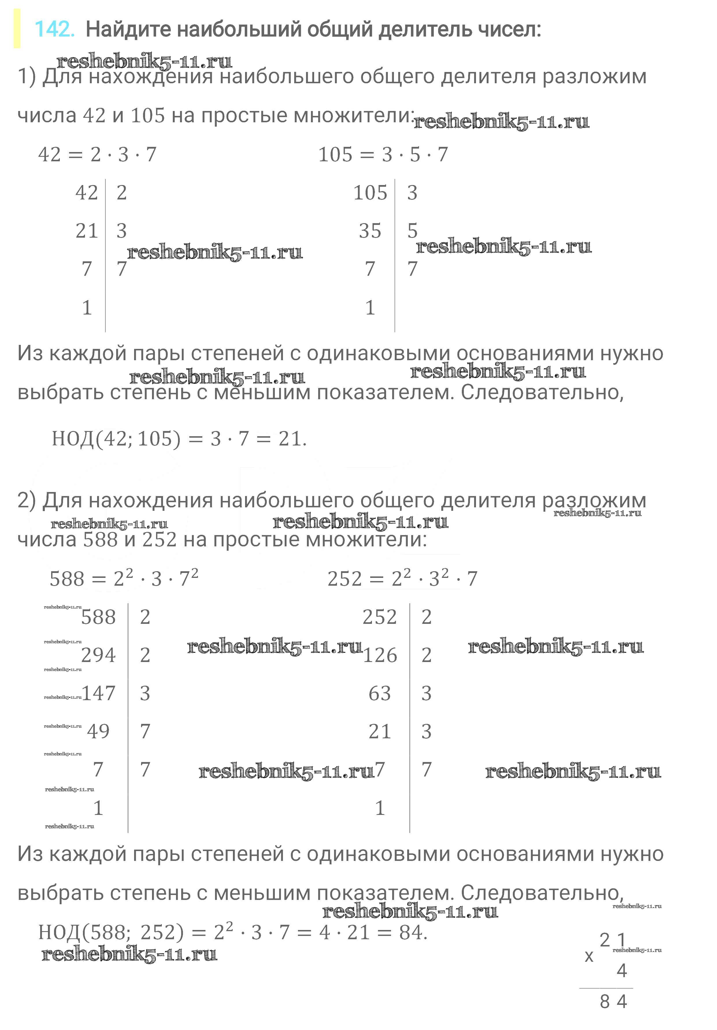 Готовая домашняя работа с ответами по Математике за 6 класс Мерзляк, Полонский, Якир Учебник Алгоритм успеха Вентана-граф 2016 ФГОС - Глава 1. Делимость натуральных чисел (упражнения) 142