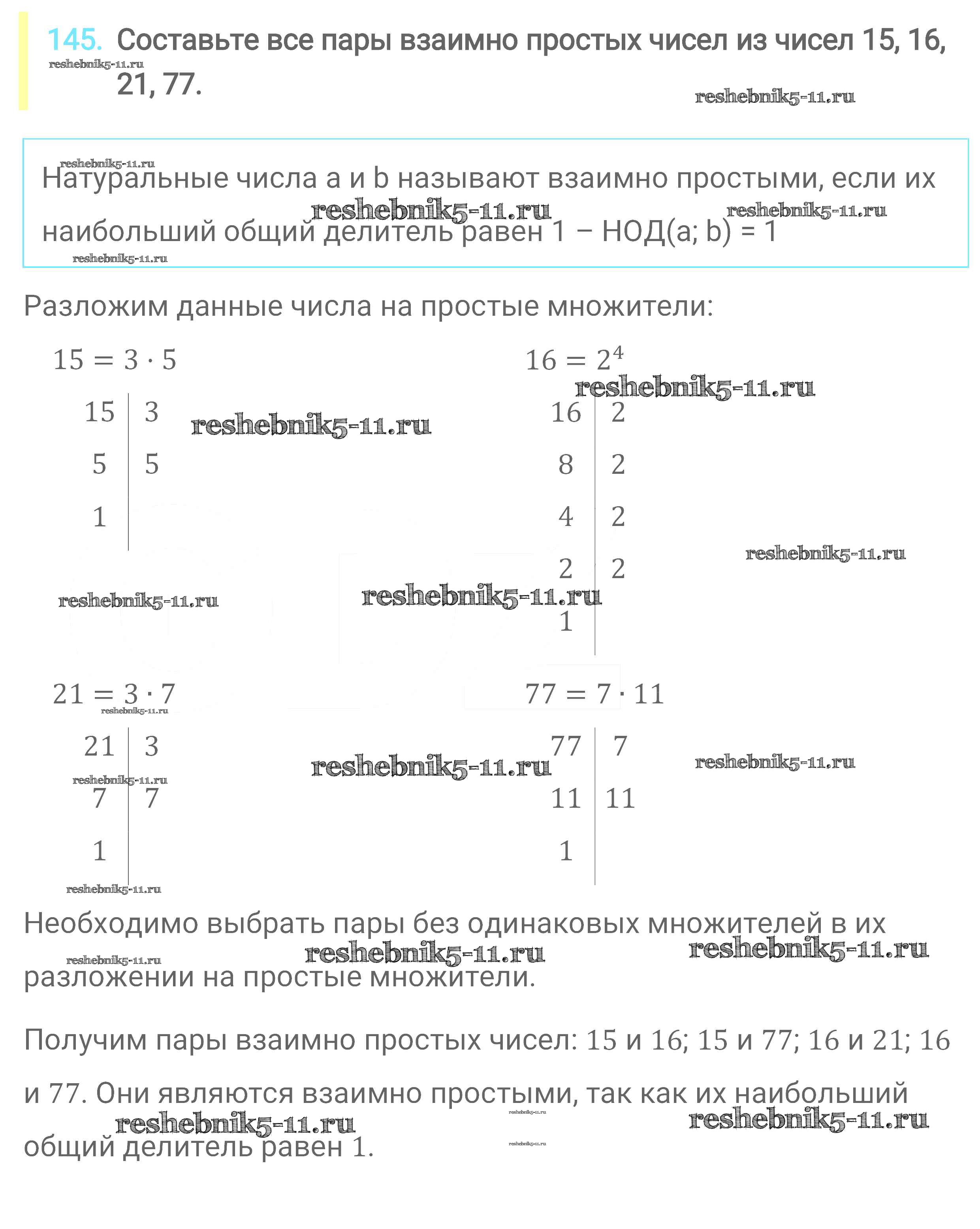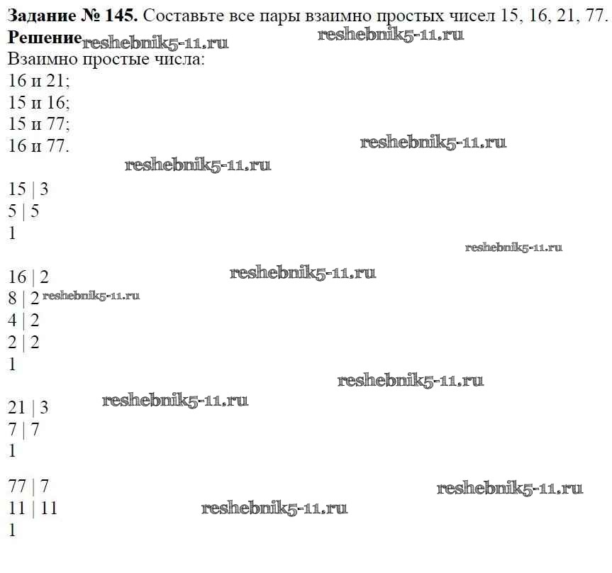 Готовая домашняя работа с ответами по Математике за 6 класс Мерзляк, Полонский, Якир Учебник Алгоритм успеха Вентана-граф 2016 ФГОС - Глава 1. Делимость натуральных чисел (упражнения) 145