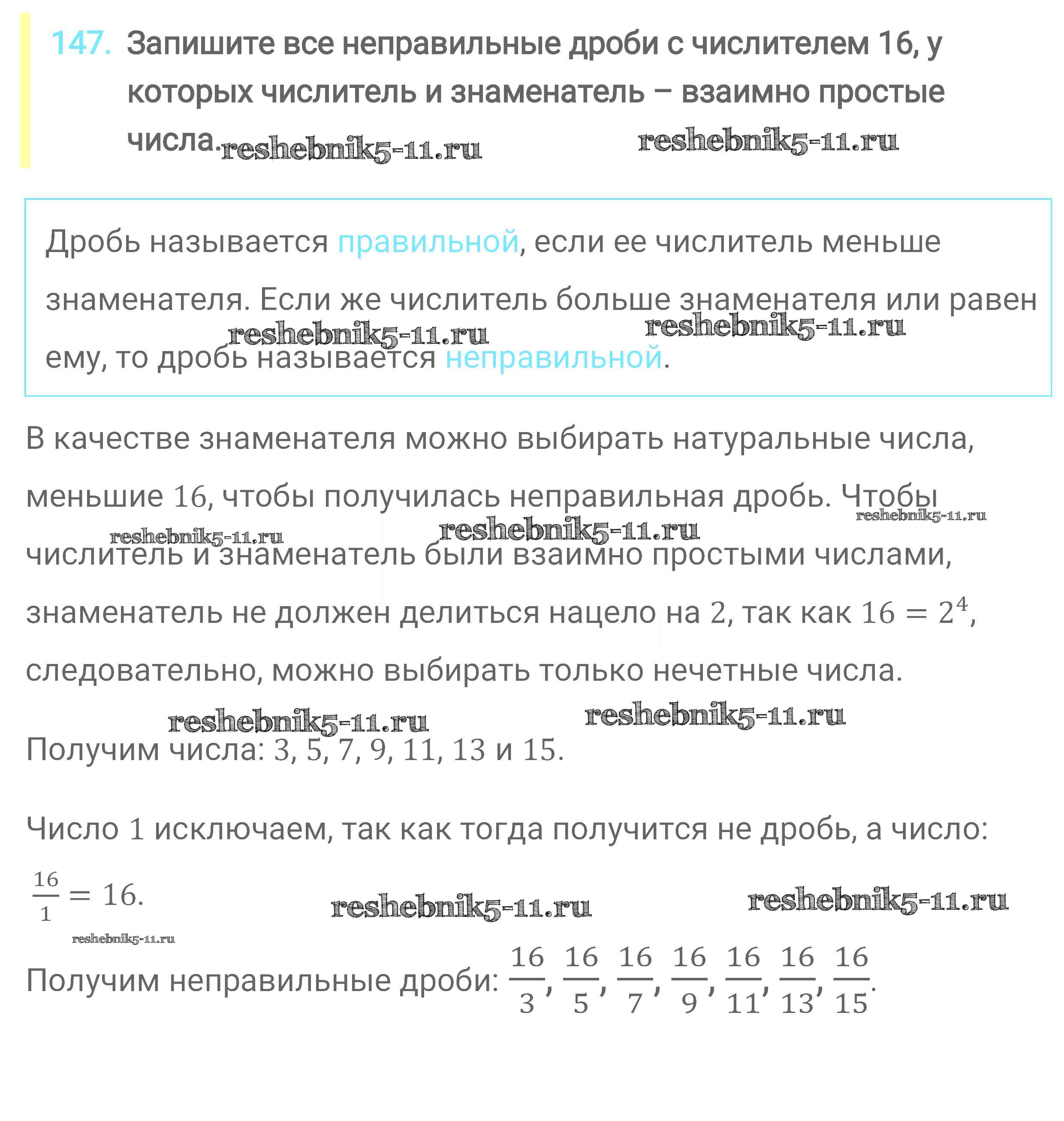Готовая домашняя работа с ответами по Математике за 6 класс Мерзляк, Полонский, Якир Учебник Алгоритм успеха Вентана-граф 2016 ФГОС - Глава 1. Делимость натуральных чисел (упражнения) 147