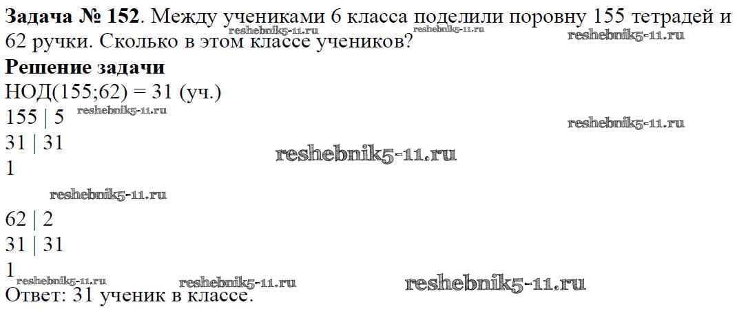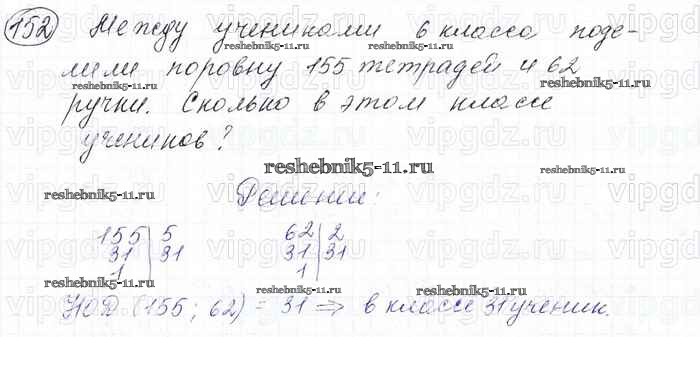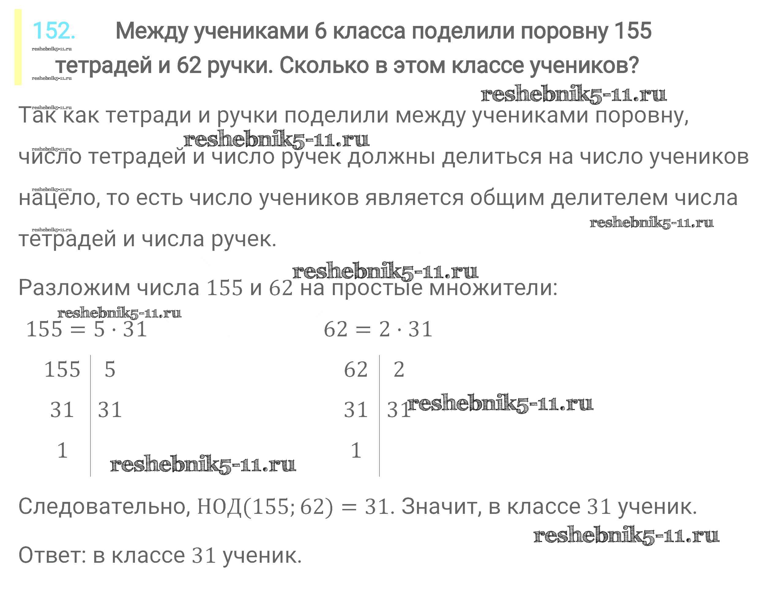 Готовая домашняя работа с ответами по Математике за 6 класс Мерзляк, Полонский, Якир Учебник Алгоритм успеха Вентана-граф 2016 ФГОС - Глава 1. Делимость натуральных чисел (упражнения) 152