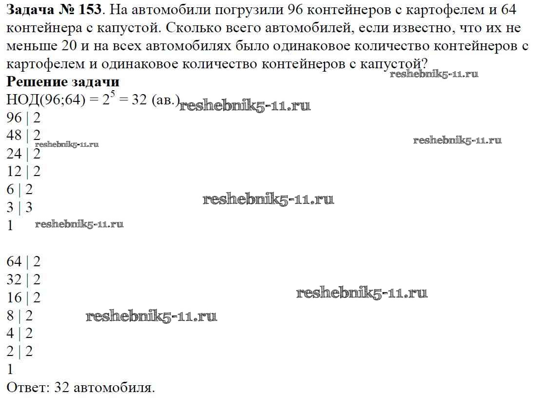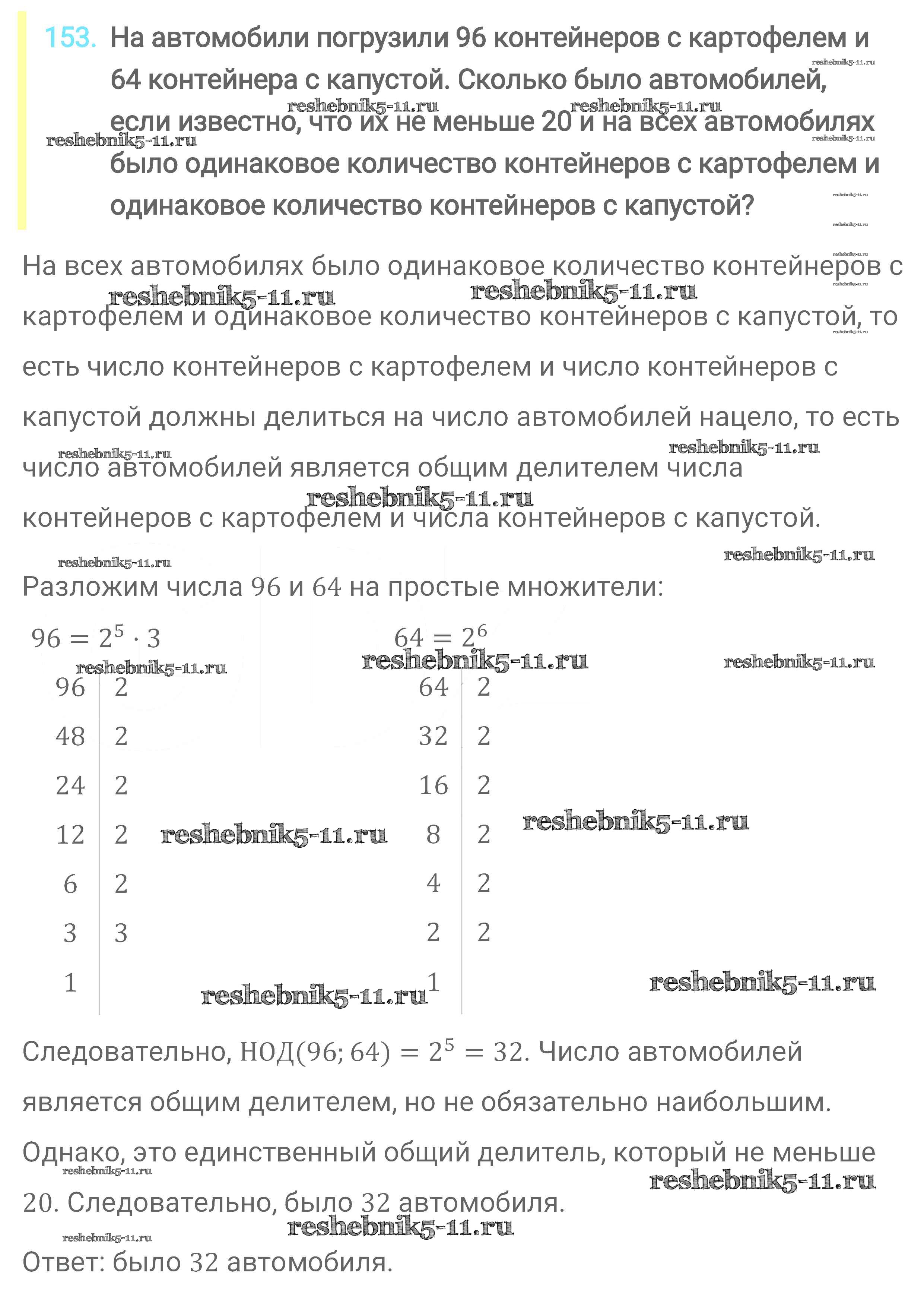 Готовая домашняя работа с ответами по Математике за 6 класс Мерзляк, Полонский, Якир Учебник Алгоритм успеха Вентана-граф 2016 ФГОС - Глава 1. Делимость натуральных чисел (упражнения) 153