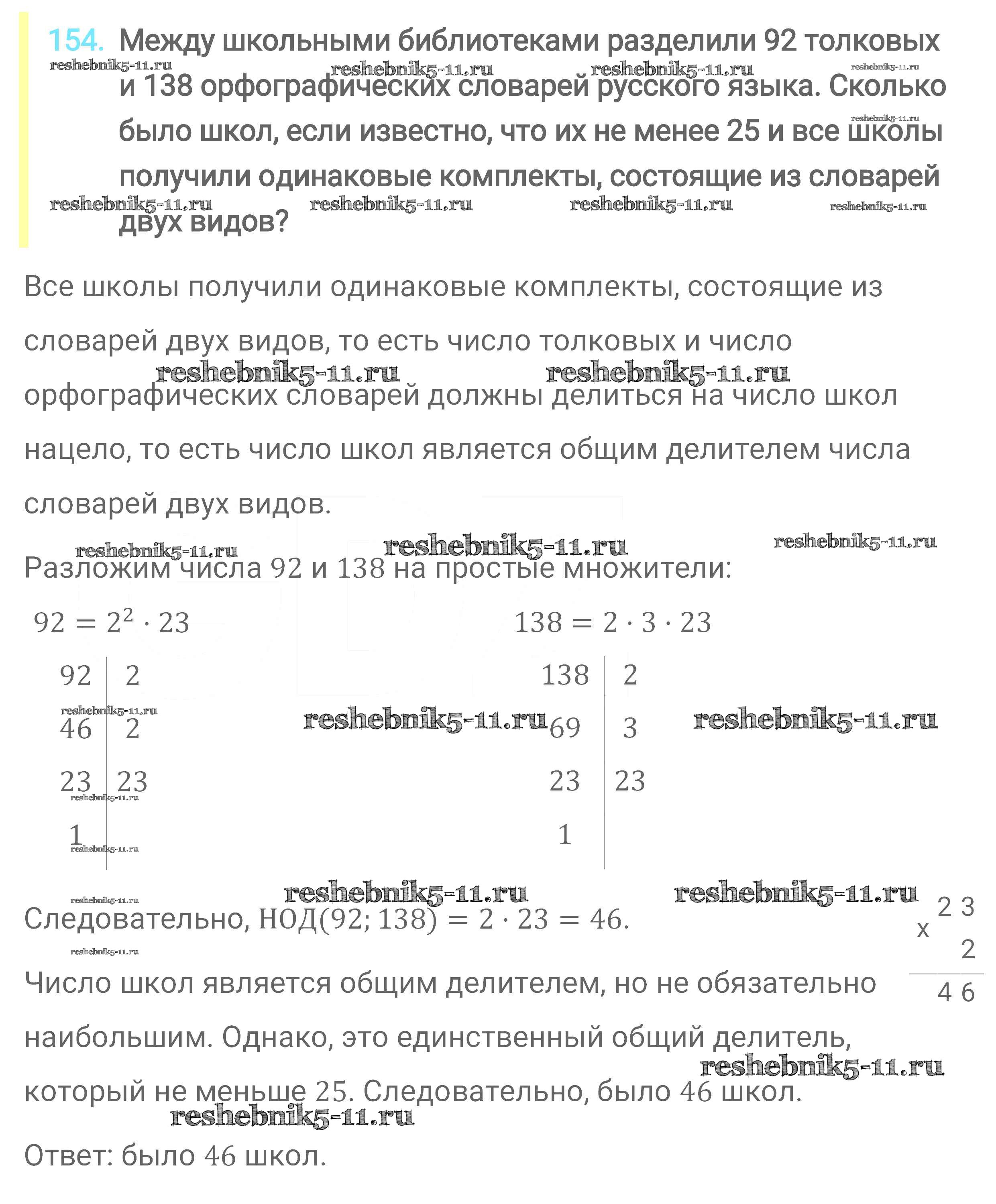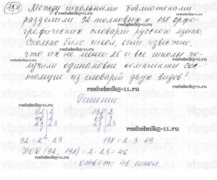 Готовая домашняя работа с ответами по Математике за 6 класс Мерзляк, Полонский, Якир Учебник Алгоритм успеха Вентана-граф 2016 ФГОС - Глава 1. Делимость натуральных чисел (упражнения) 154