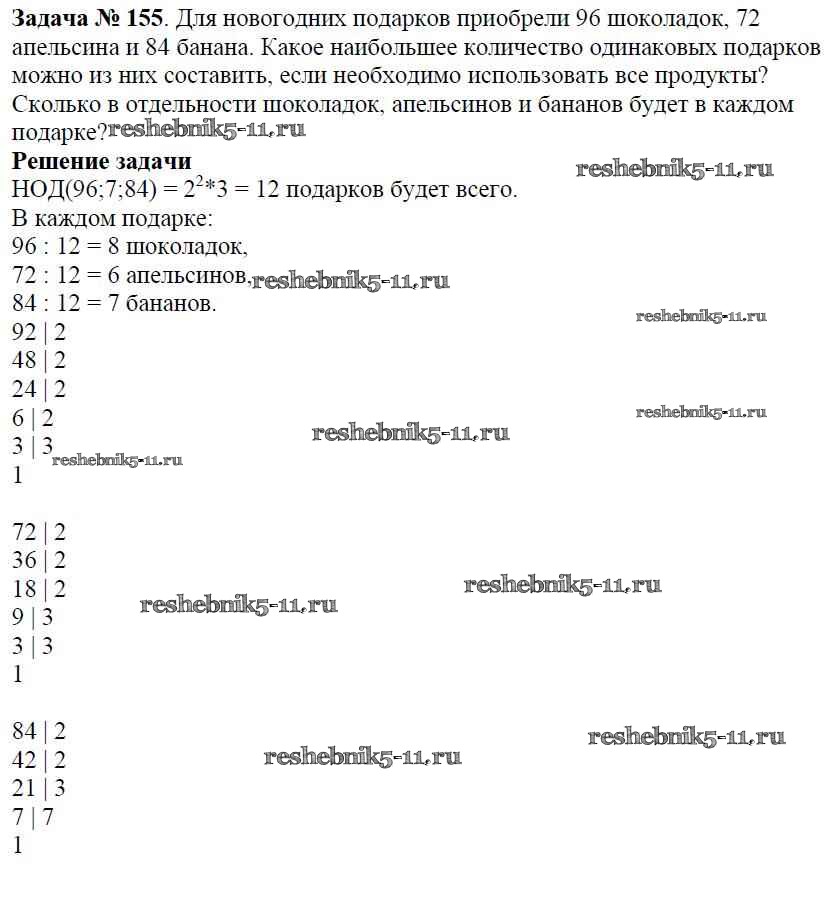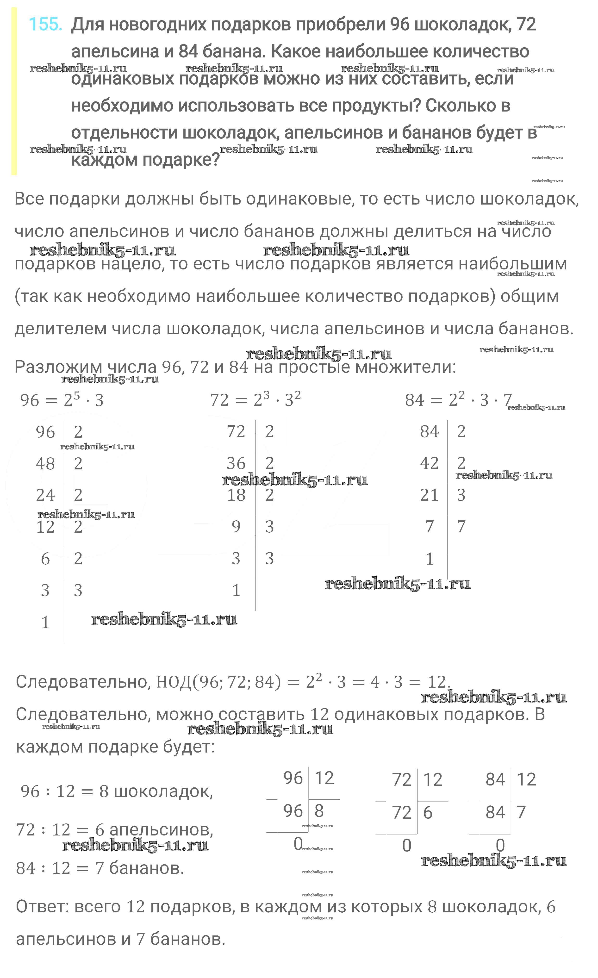Готовая домашняя работа с ответами по Математике за 6 класс Мерзляк, Полонский, Якир Учебник Алгоритм успеха Вентана-граф 2016 ФГОС - Глава 1. Делимость натуральных чисел (упражнения) 155