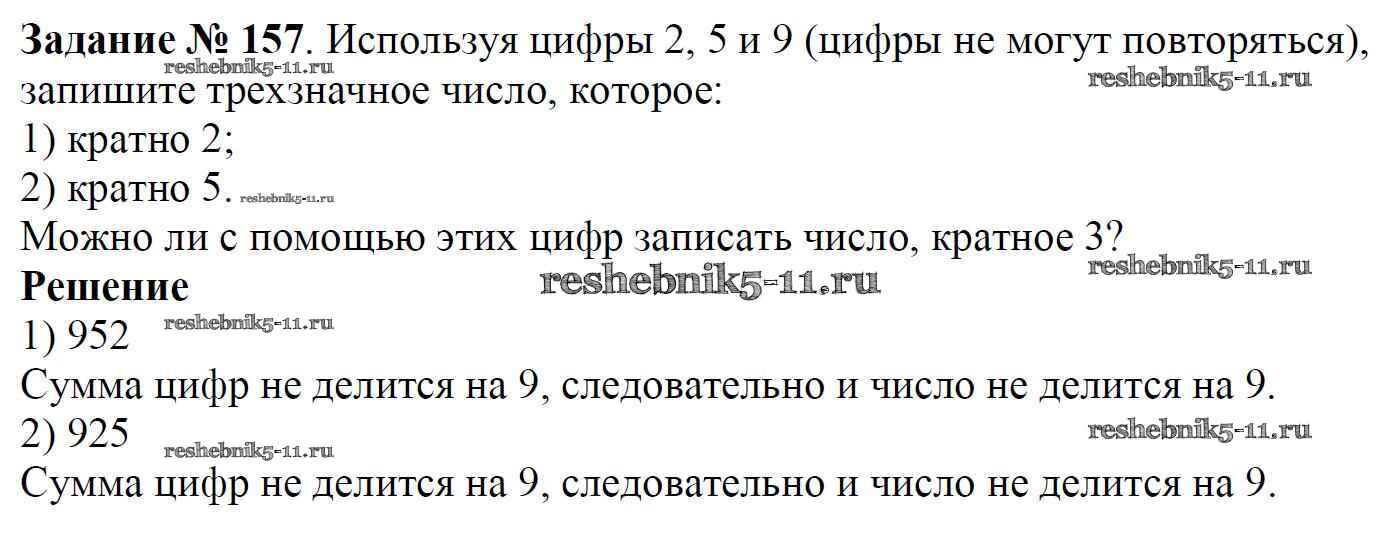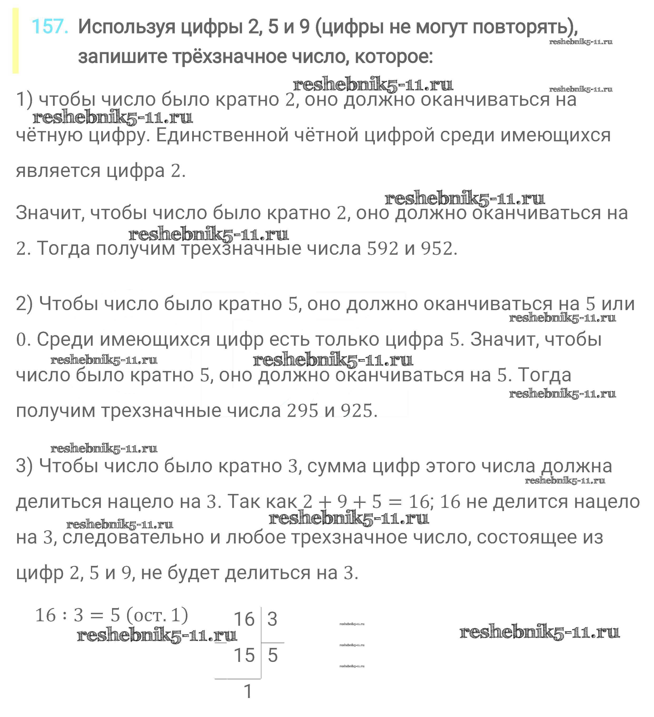 Готовая домашняя работа с ответами по Математике за 6 класс Мерзляк, Полонский, Якир Учебник Алгоритм успеха Вентана-граф 2016 ФГОС - Глава 1. Делимость натуральных чисел (упражнения) 157