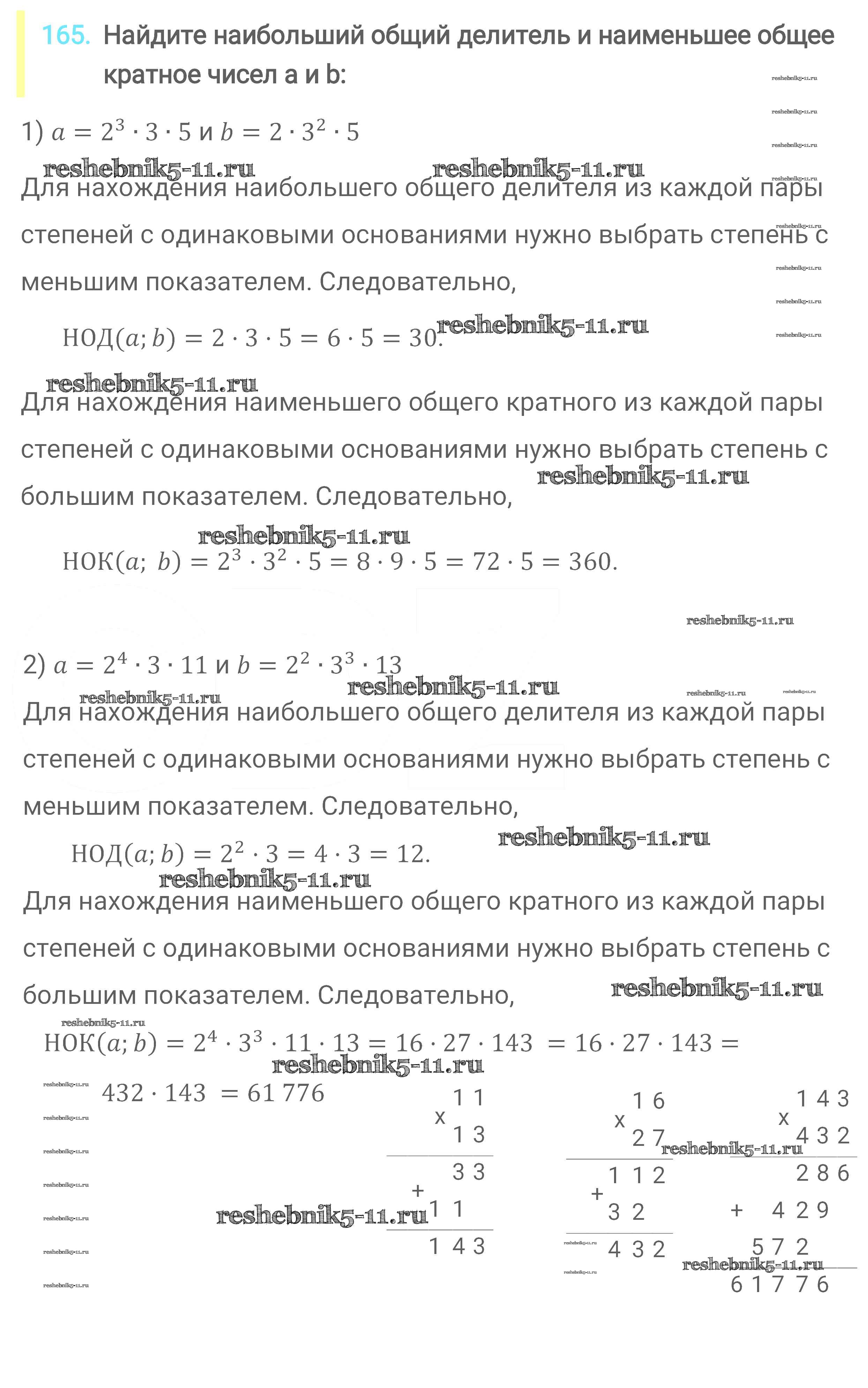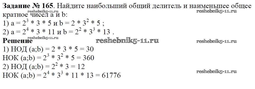 Готовая домашняя работа с ответами по Математике за 6 класс Мерзляк, Полонский, Якир Учебник Алгоритм успеха Вентана-граф 2016 ФГОС - Глава 1. Делимость натуральных чисел (упражнения) 165