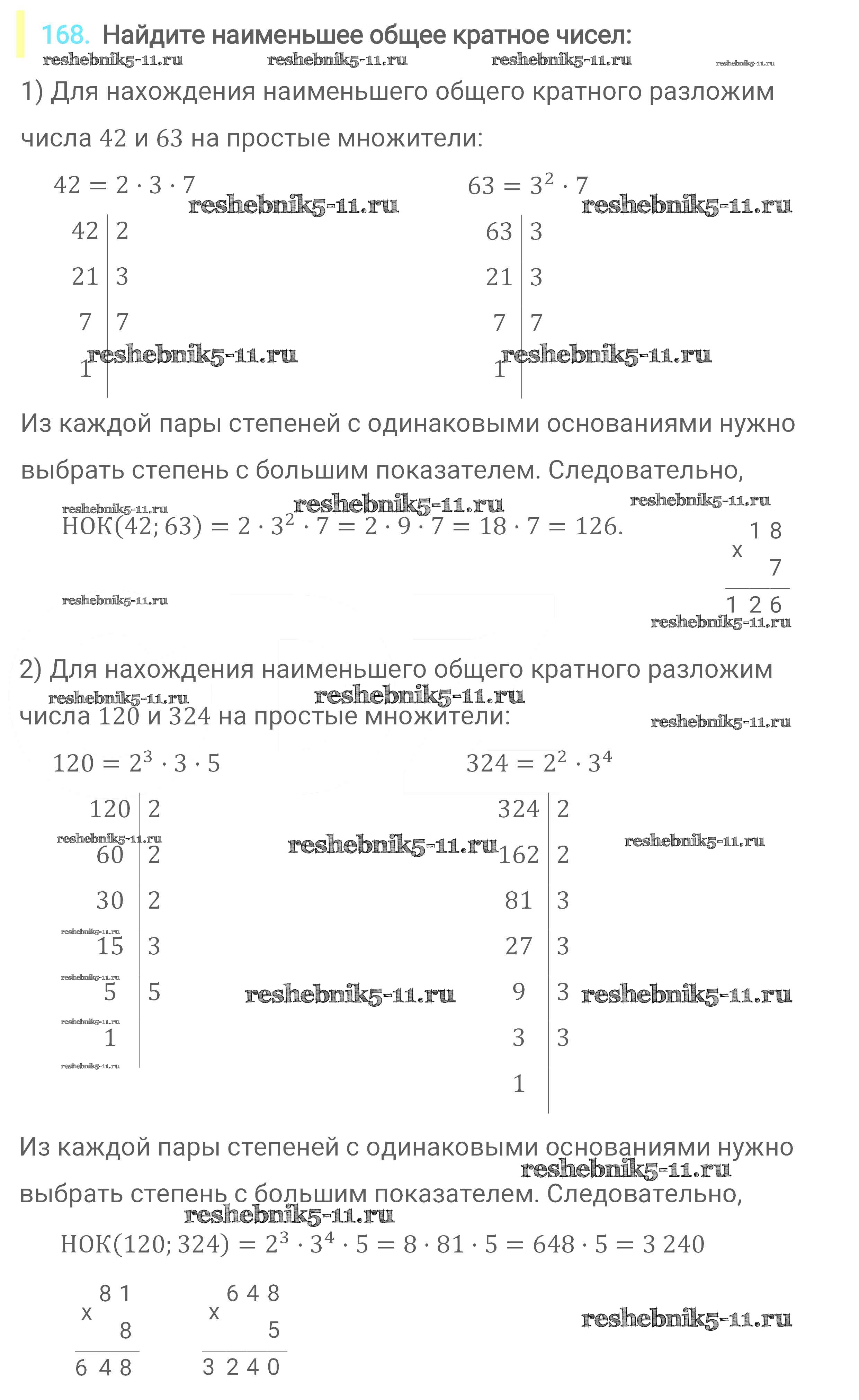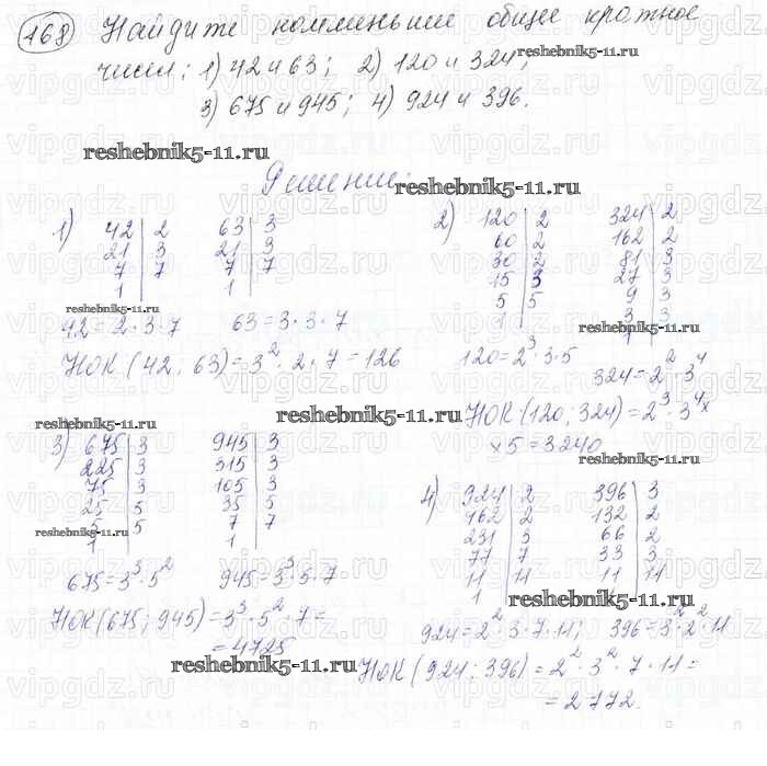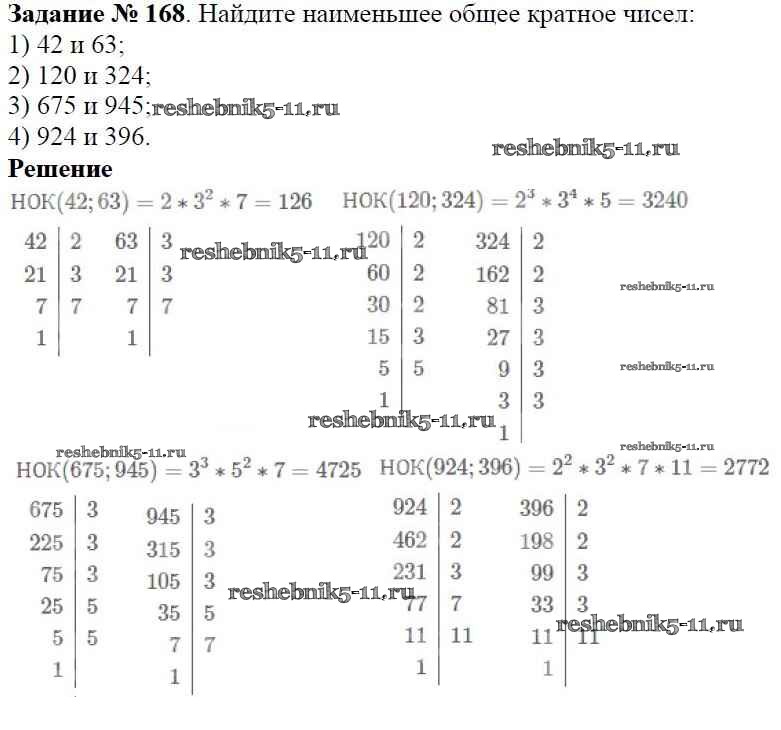 Готовая домашняя работа с ответами по Математике за 6 класс Мерзляк, Полонский, Якир Учебник Алгоритм успеха Вентана-граф 2016 ФГОС - Глава 1. Делимость натуральных чисел (упражнения) 168
