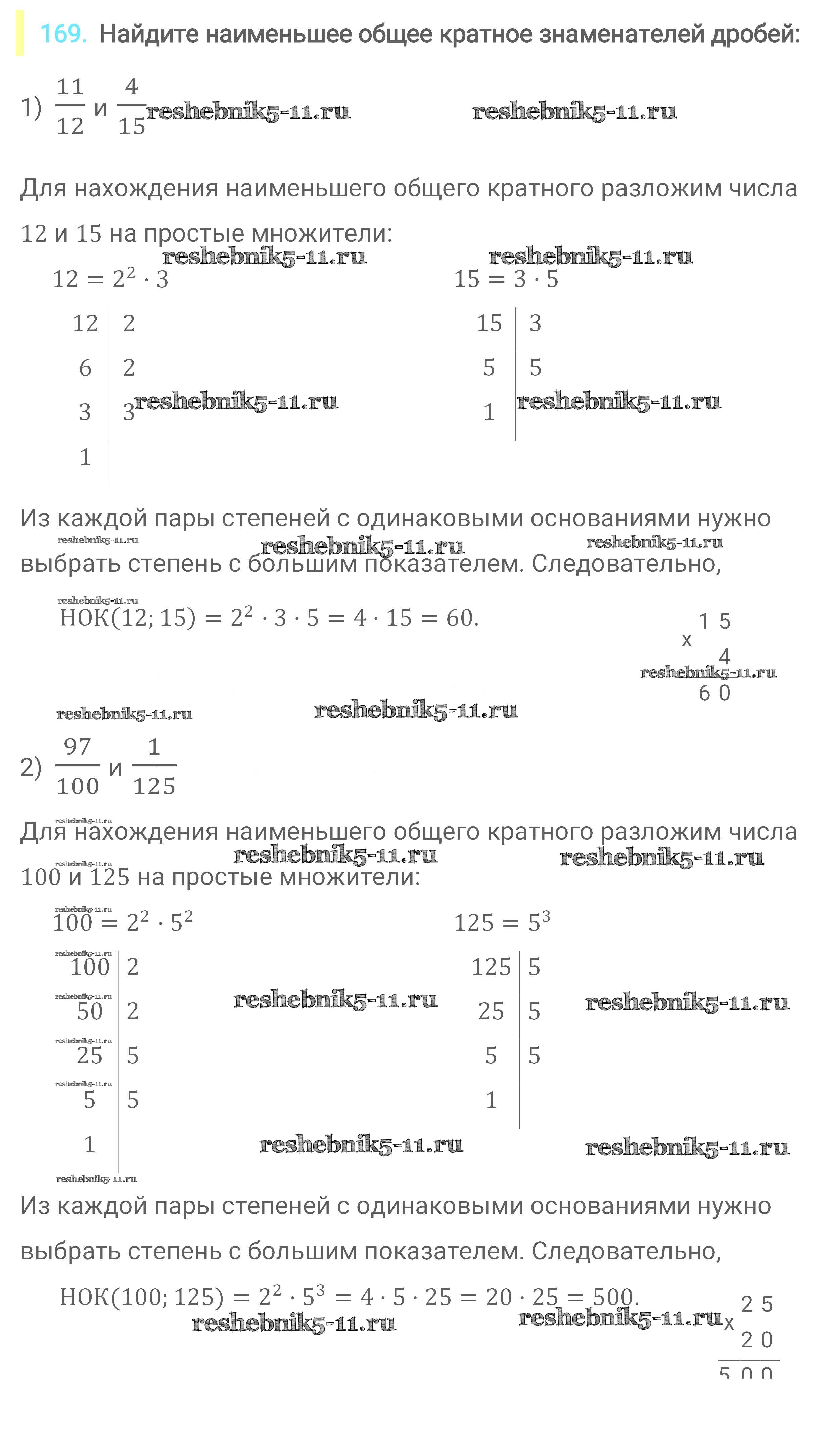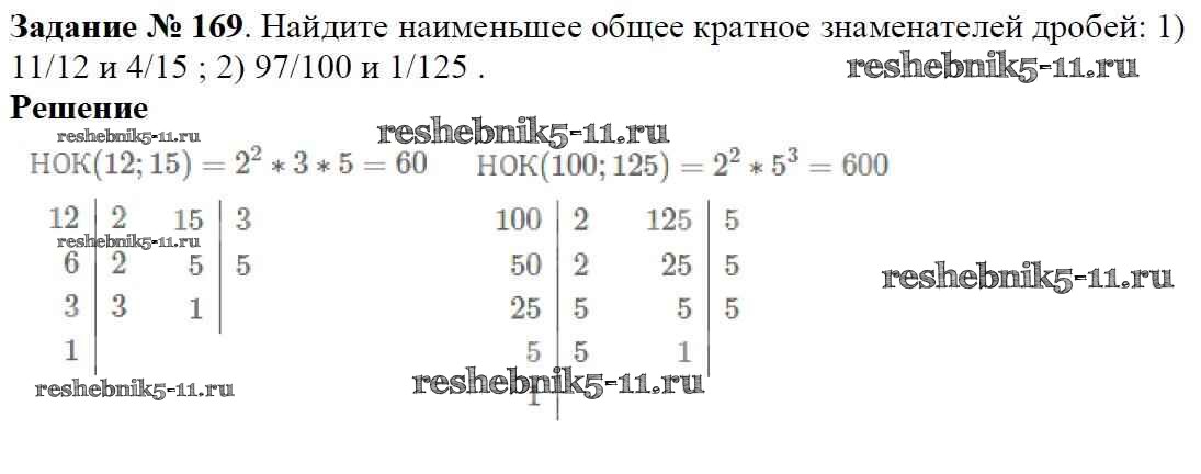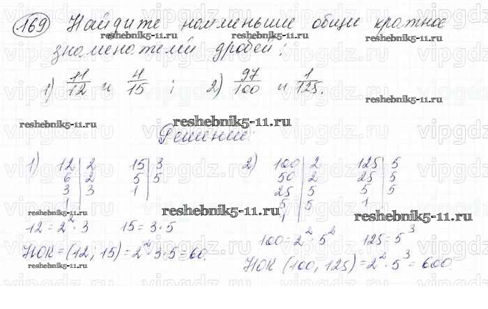 Готовая домашняя работа с ответами по Математике за 6 класс Мерзляк, Полонский, Якир Учебник Алгоритм успеха Вентана-граф 2016 ФГОС - Глава 1. Делимость натуральных чисел (упражнения) 169
