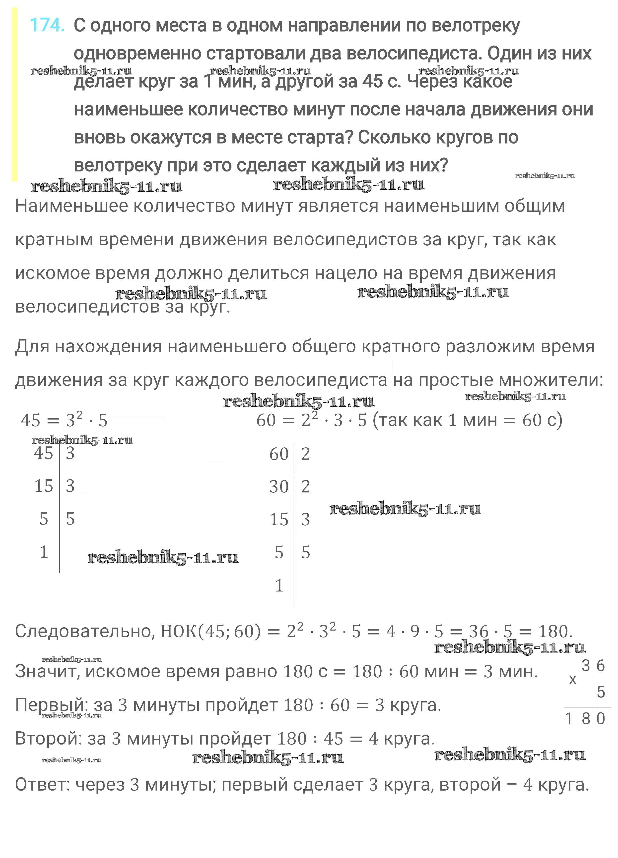 Готовая домашняя работа с ответами по Математике за 6 класс Мерзляк, Полонский, Якир Учебник Алгоритм успеха Вентана-граф 2016 ФГОС - Глава 1. Делимость натуральных чисел (упражнения) 174