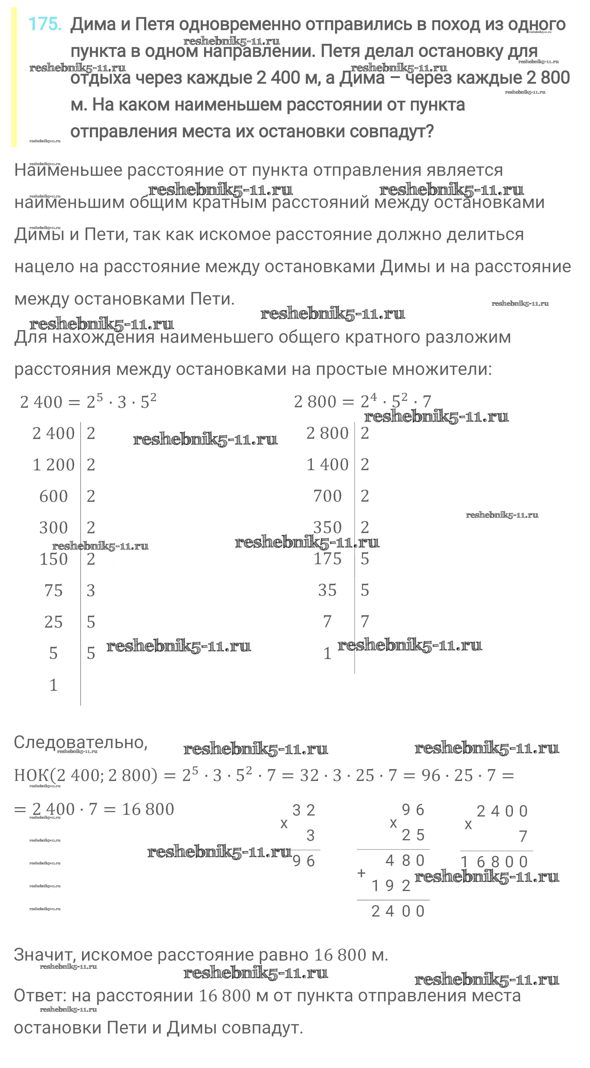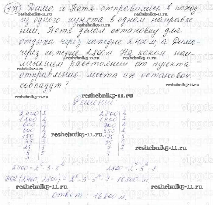 Готовая домашняя работа с ответами по Математике за 6 класс Мерзляк, Полонский, Якир Учебник Алгоритм успеха Вентана-граф 2016 ФГОС - Глава 1. Делимость натуральных чисел (упражнения) 175