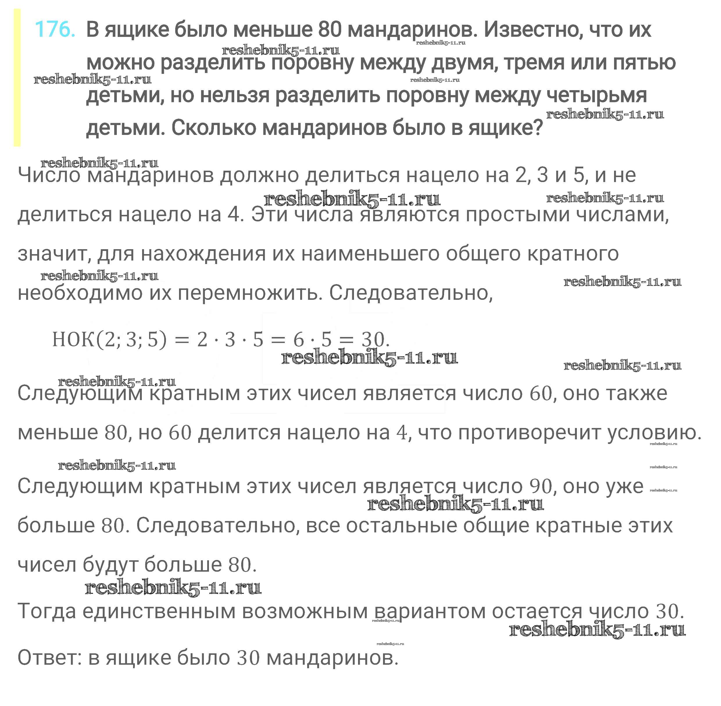 Готовая домашняя работа с ответами по Математике за 6 класс Мерзляк, Полонский, Якир Учебник Алгоритм успеха Вентана-граф 2016 ФГОС - Глава 1. Делимость натуральных чисел (упражнения) 176