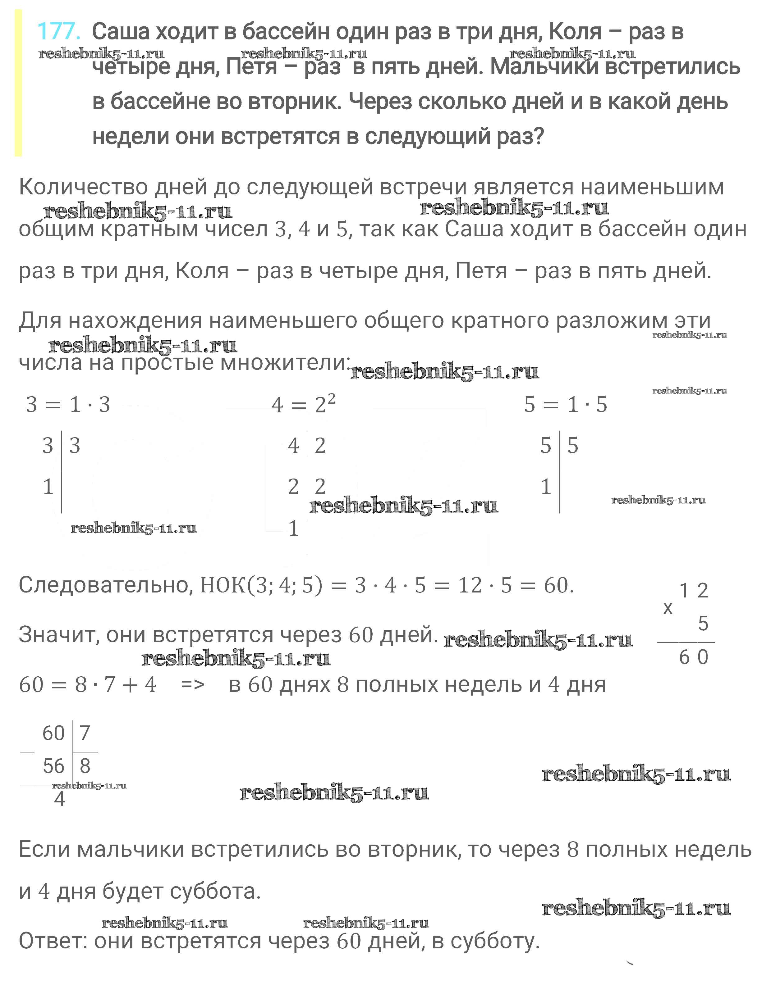 Готовая домашняя работа с ответами по Математике за 6 класс Мерзляк, Полонский, Якир Учебник Алгоритм успеха Вентана-граф 2016 ФГОС - Глава 1. Делимость натуральных чисел (упражнения) 177