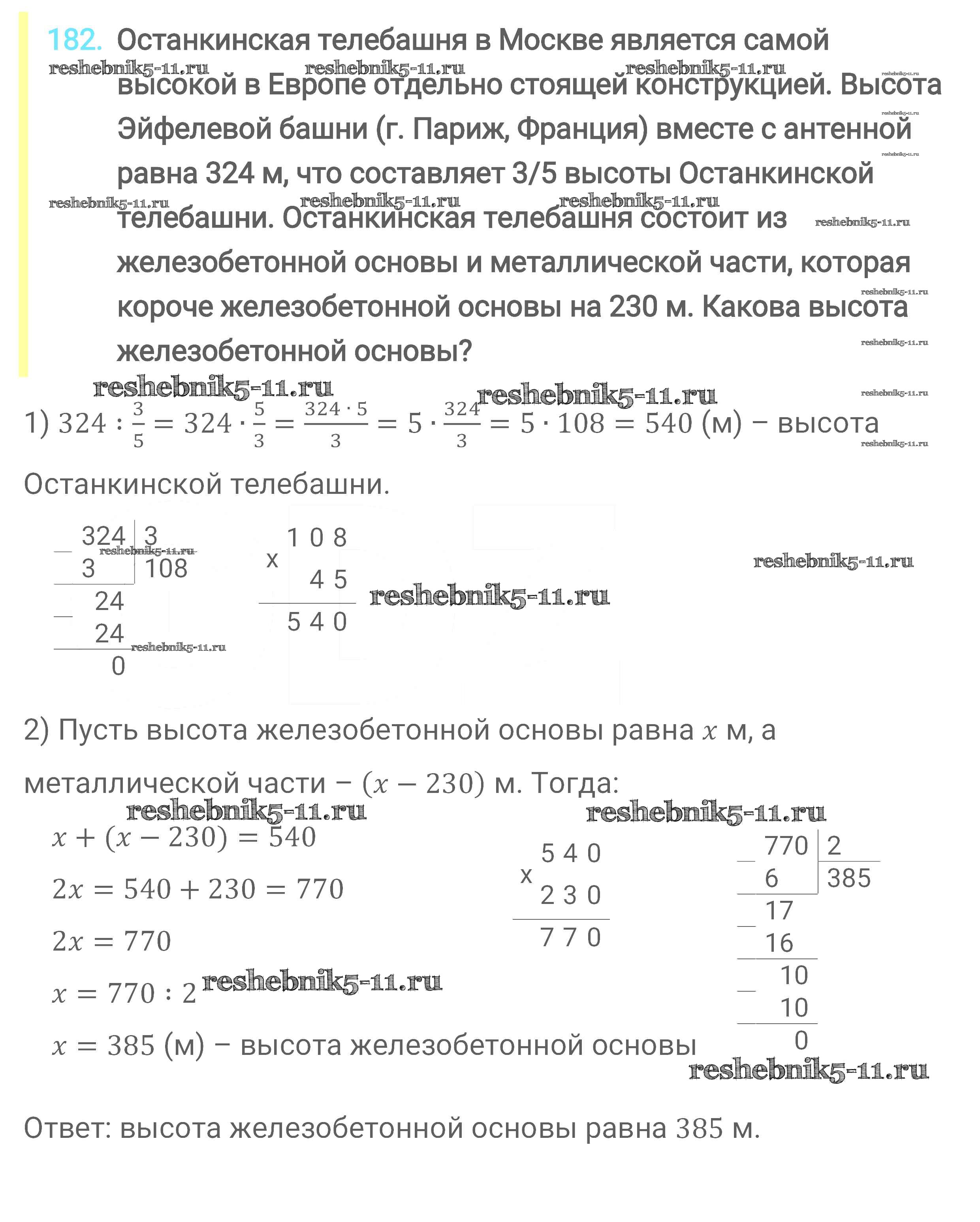 Готовая домашняя работа с ответами по Математике за 6 класс Мерзляк, Полонский, Якир Учебник Алгоритм успеха Вентана-граф 2016 ФГОС - Глава 1. Делимость натуральных чисел (упражнения) 182