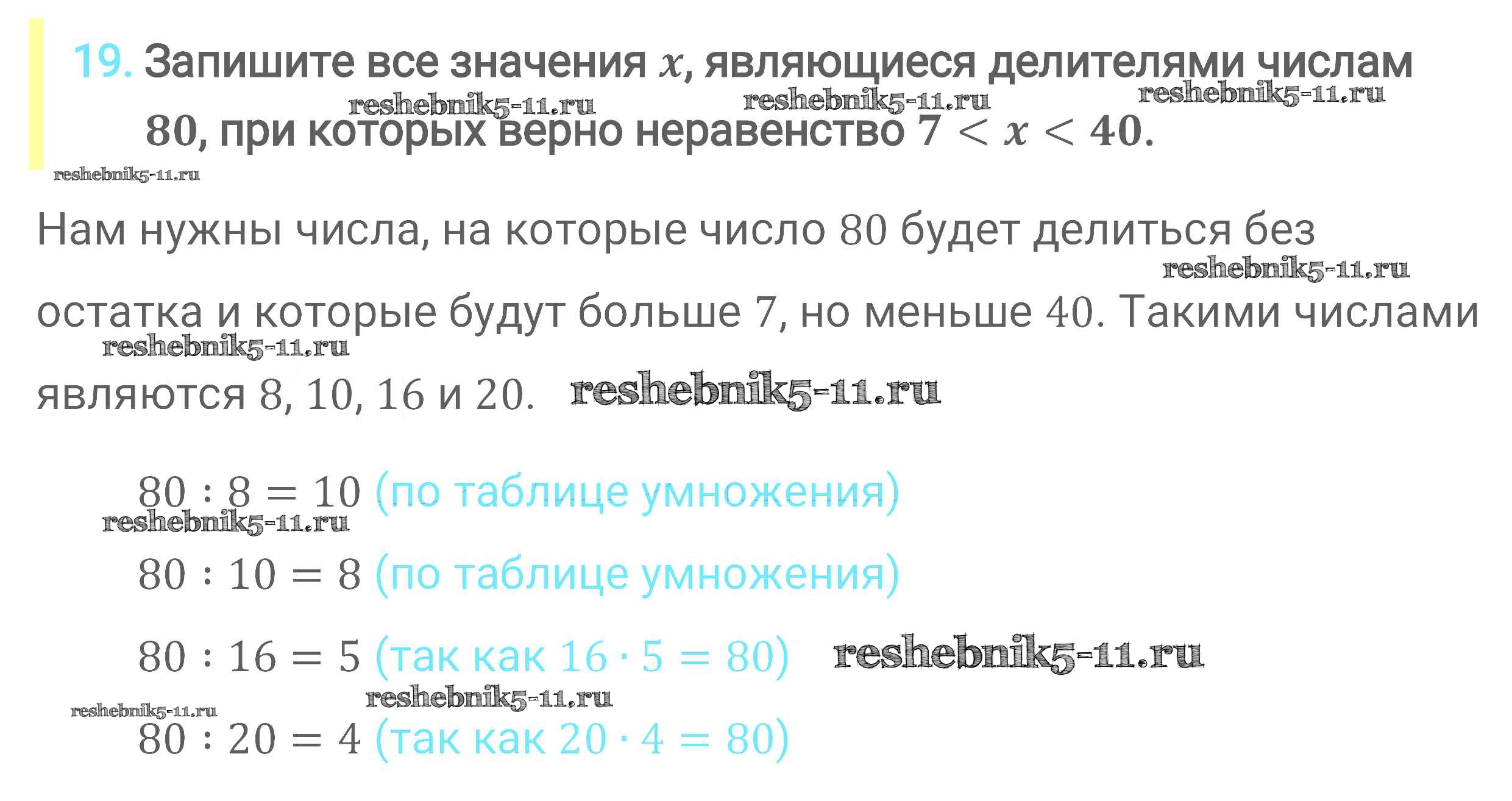 Готовая домашняя работа с ответами по Математике за 6 класс Мерзляк, Полонский, Якир Учебник Алгоритм успеха Вентана-граф 2016 ФГОС - Глава 1. Делимость натуральных чисел (упражнения) 19