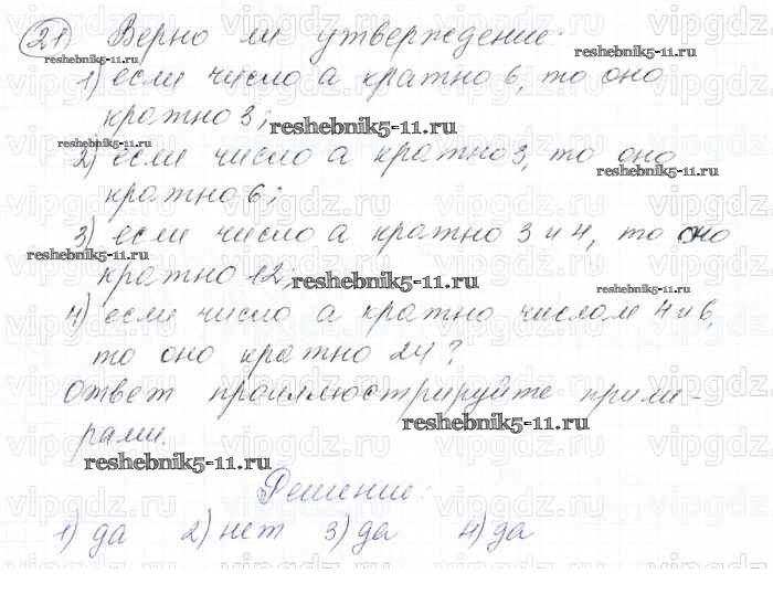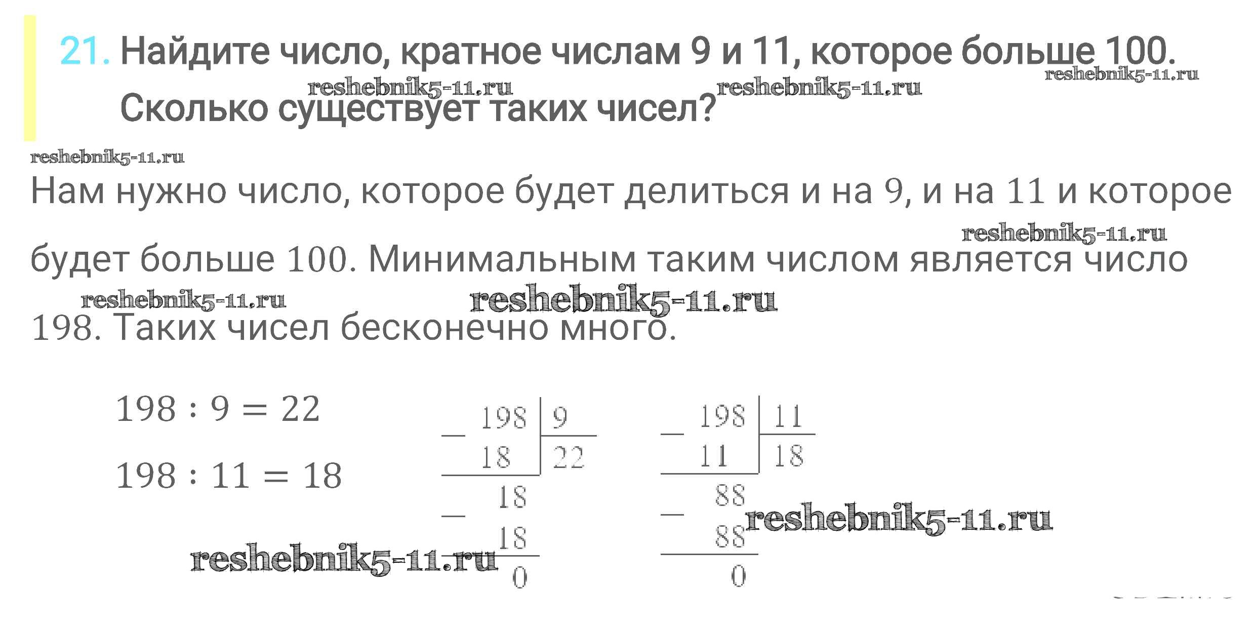 Готовая домашняя работа с ответами по Математике за 6 класс Мерзляк, Полонский, Якир Учебник Алгоритм успеха Вентана-граф 2016 ФГОС - Глава 1. Делимость натуральных чисел (упражнения) 21