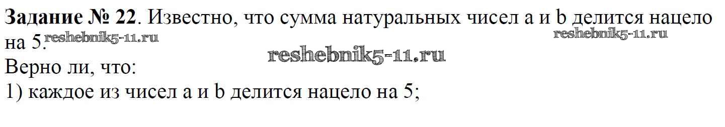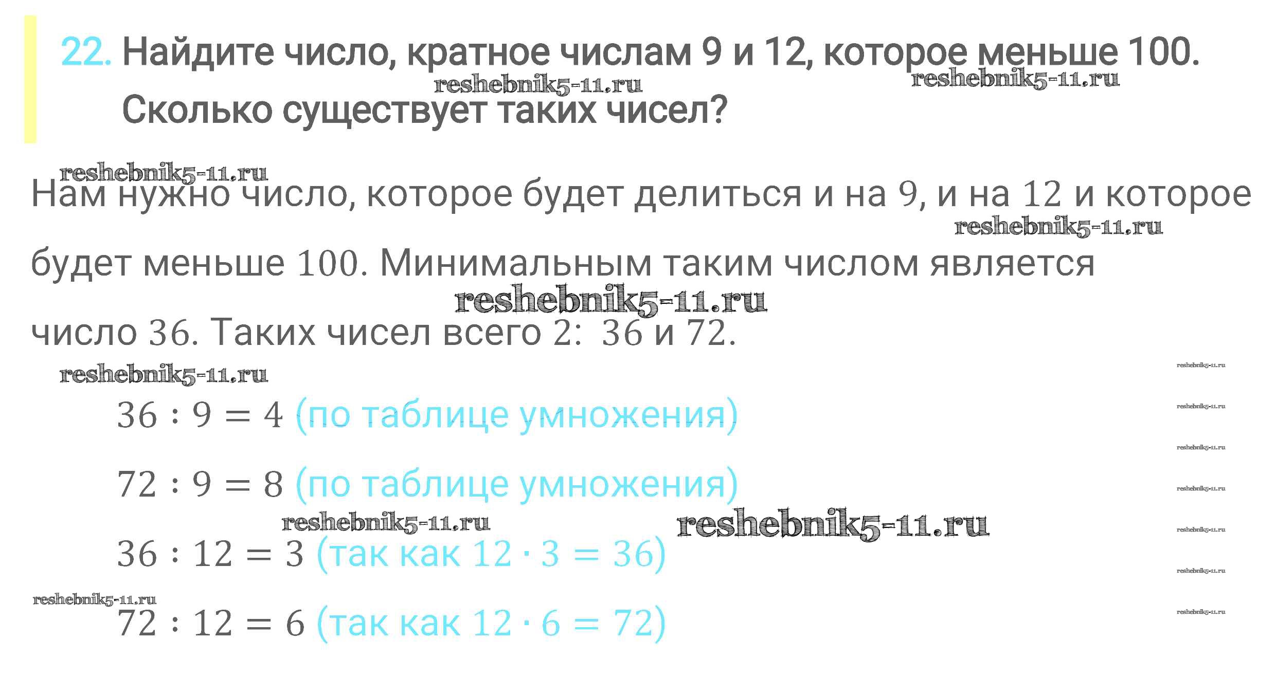 Готовая домашняя работа с ответами по Математике за 6 класс Мерзляк, Полонский, Якир Учебник Алгоритм успеха Вентана-граф 2016 ФГОС - Глава 1. Делимость натуральных чисел (упражнения) 22