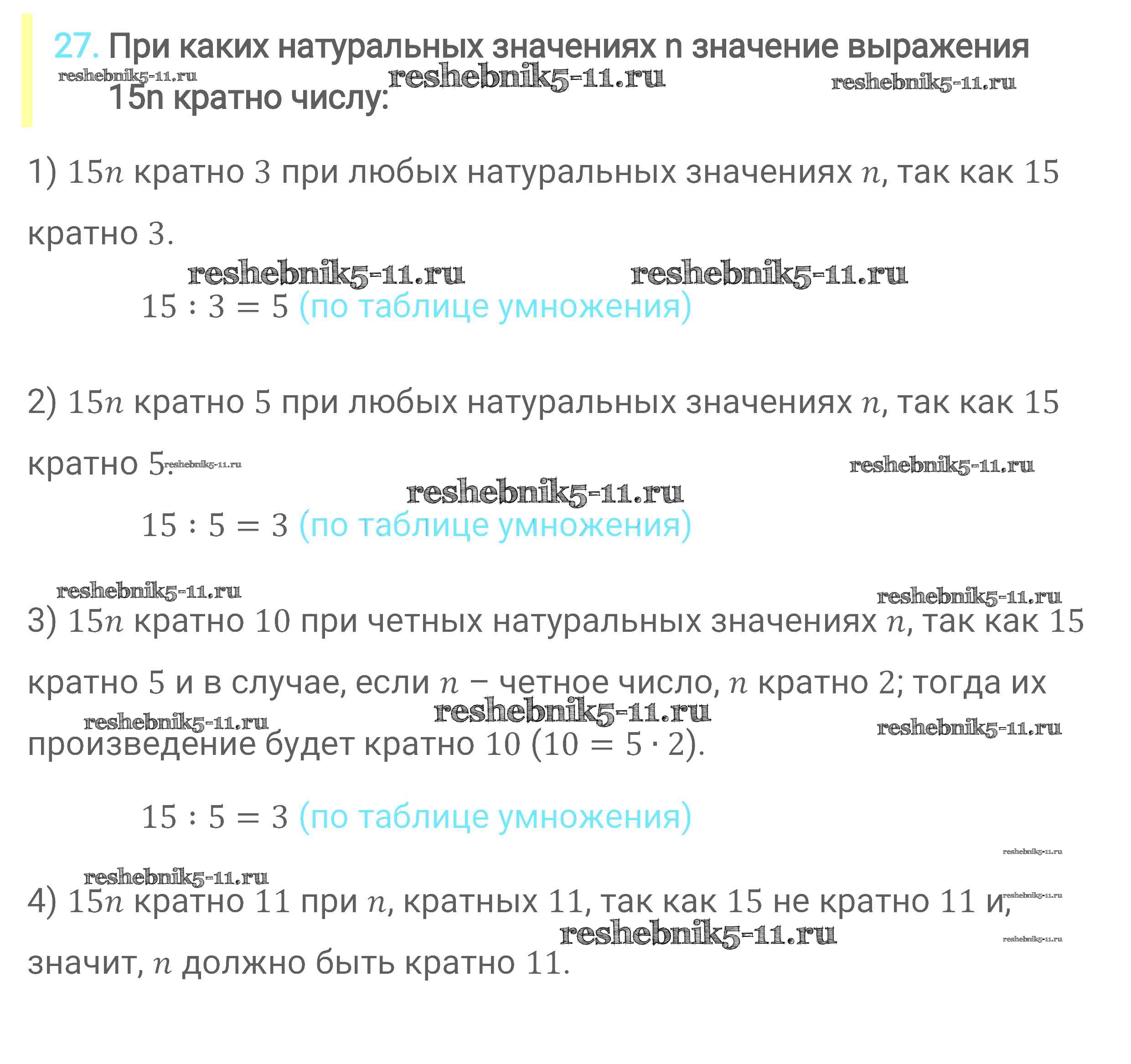 Готовая домашняя работа с ответами по Математике за 6 класс Мерзляк, Полонский, Якир Учебник Алгоритм успеха Вентана-граф 2016 ФГОС - Глава 1. Делимость натуральных чисел (упражнения) 27