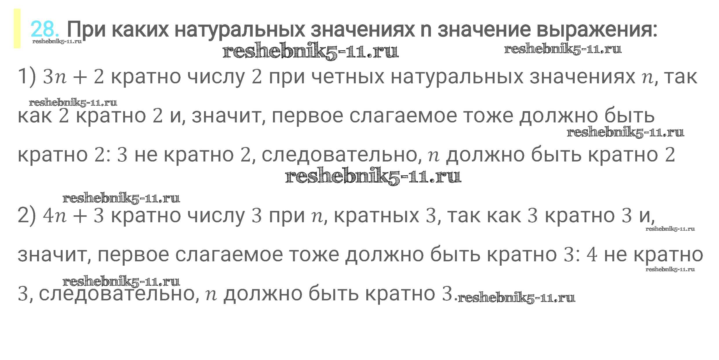 Готовая домашняя работа с ответами по Математике за 6 класс Мерзляк, Полонский, Якир Учебник Алгоритм успеха Вентана-граф 2016 ФГОС - Глава 1. Делимость натуральных чисел (упражнения) 28