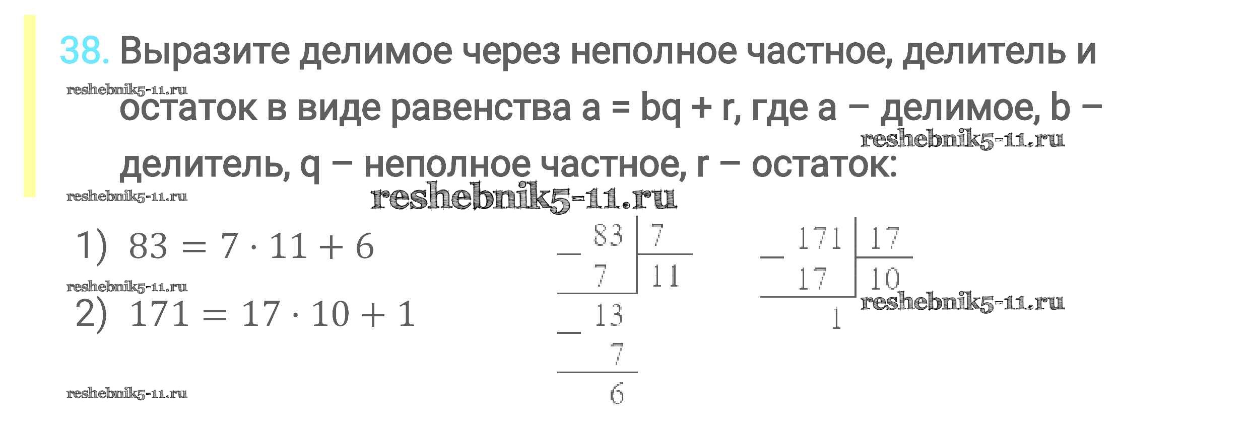 Готовая домашняя работа с ответами по Математике за 6 класс Мерзляк, Полонский, Якир Учебник Алгоритм успеха Вентана-граф 2016 ФГОС - Глава 1. Делимость натуральных чисел (упражнения) 38