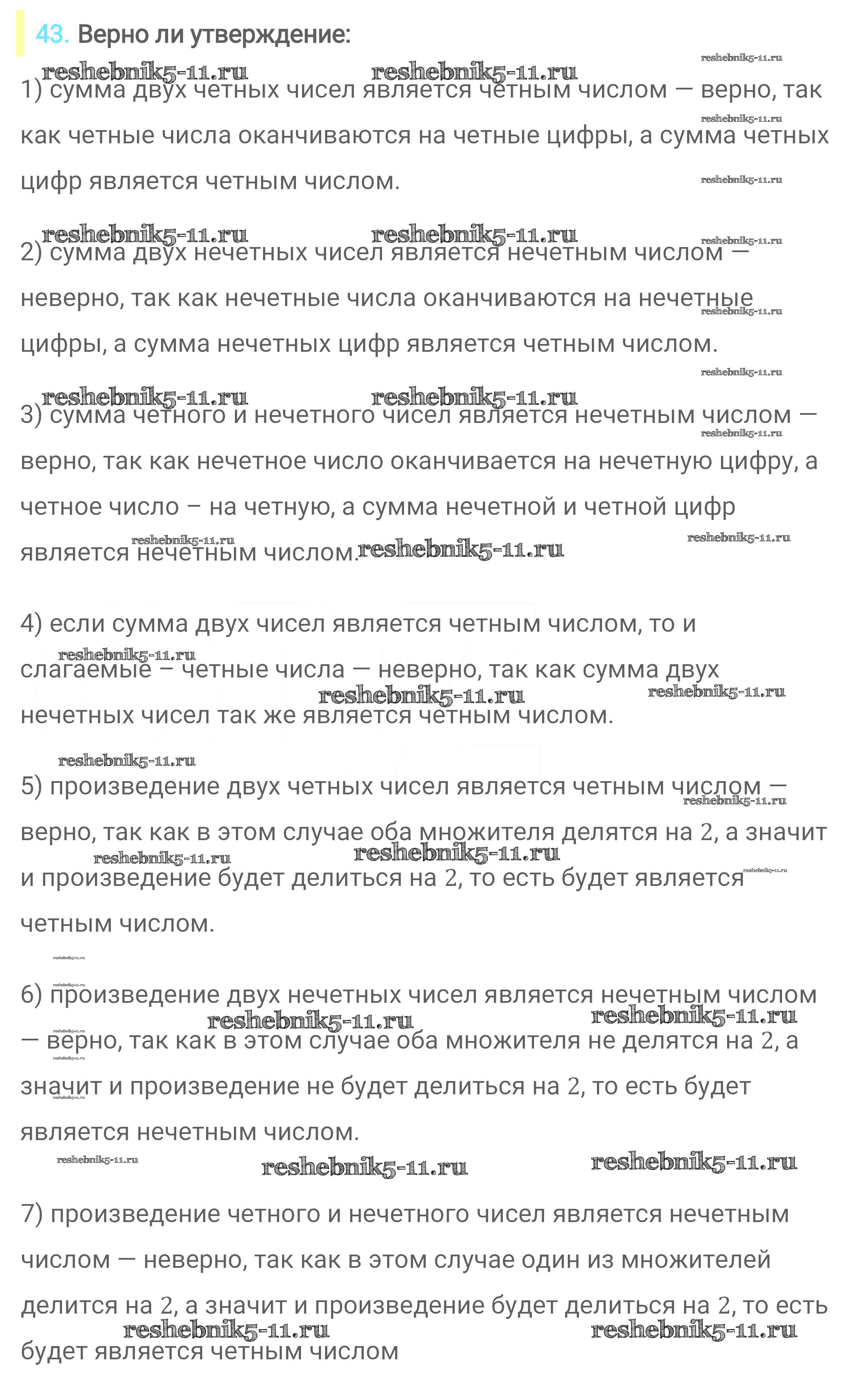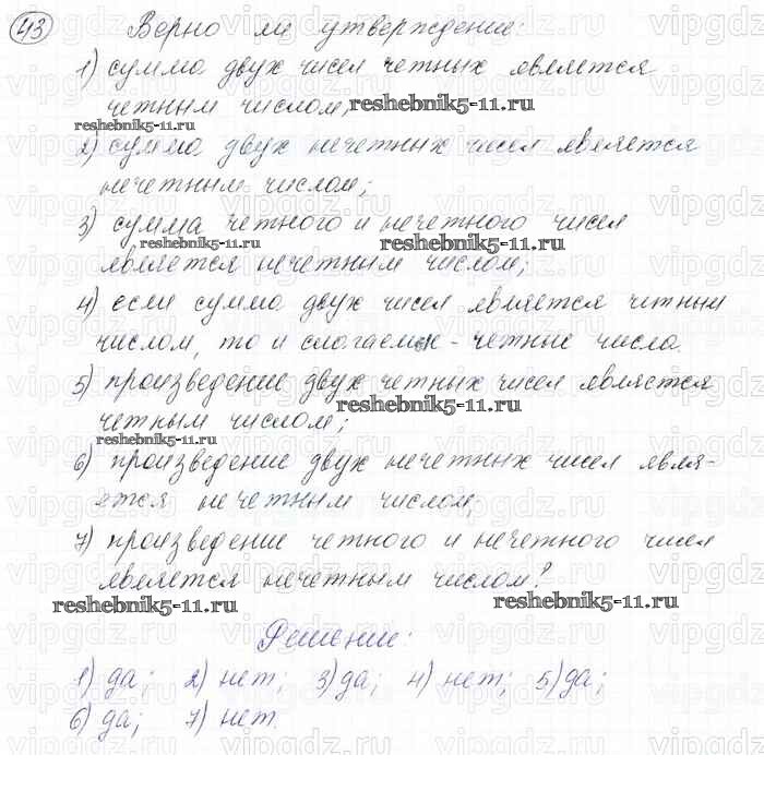 Готовая домашняя работа с ответами по Математике за 6 класс Мерзляк, Полонский, Якир Учебник Алгоритм успеха Вентана-граф 2016 ФГОС - Глава 1. Делимость натуральных чисел (упражнения) 43