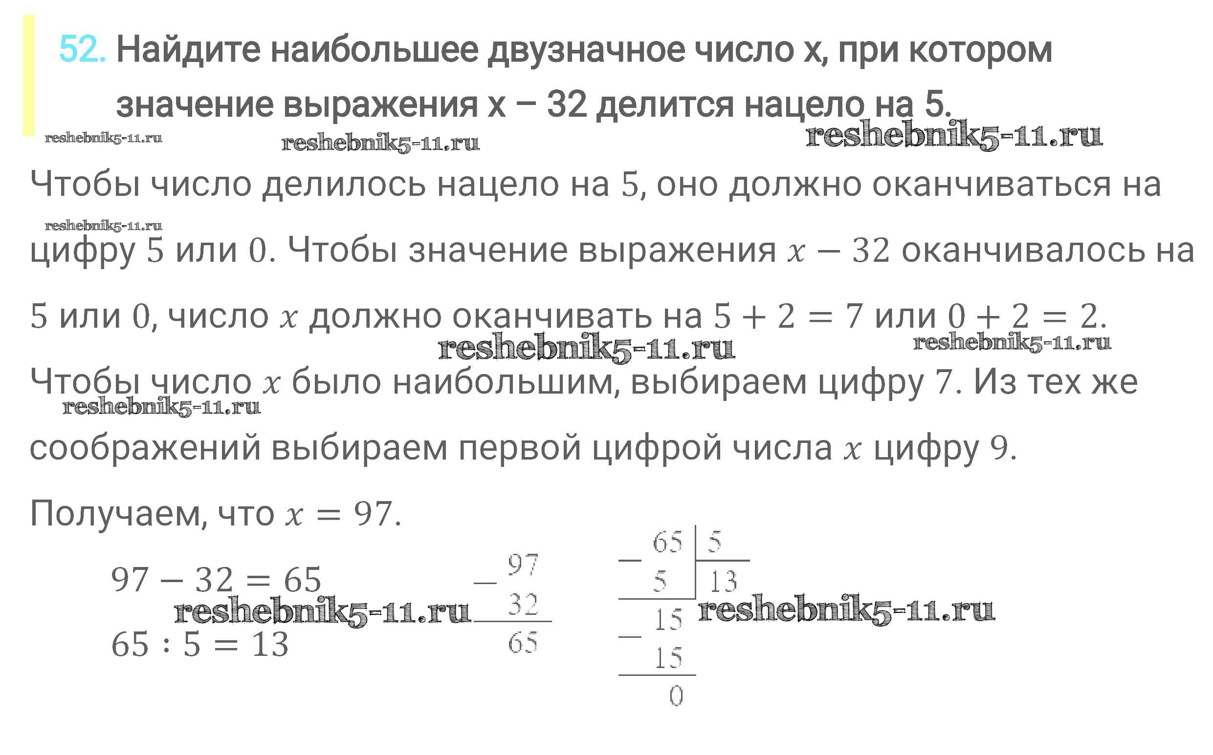 Готовая домашняя работа с ответами по Математике за 6 класс Мерзляк, Полонский, Якир Учебник Алгоритм успеха Вентана-граф 2016 ФГОС - Глава 1. Делимость натуральных чисел (упражнения) 52