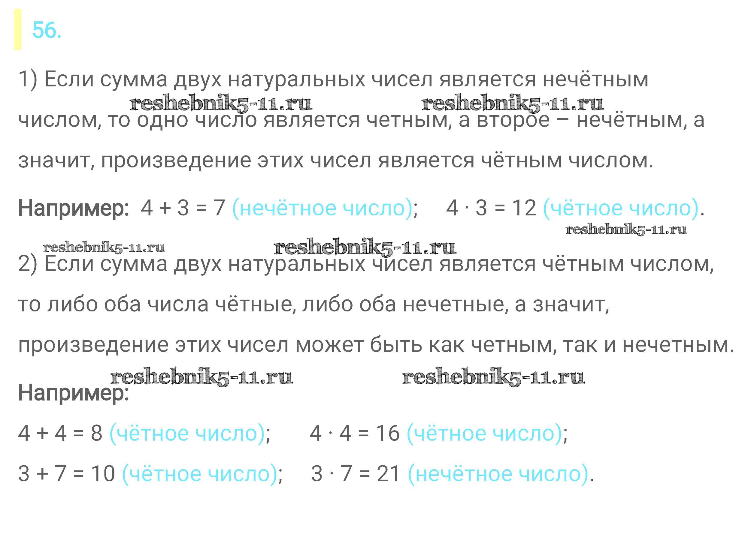 Готовая домашняя работа с ответами по Математике за 6 класс Мерзляк, Полонский, Якир Учебник Алгоритм успеха Вентана-граф 2016 ФГОС - Глава 1. Делимость натуральных чисел (упражнения) 56
