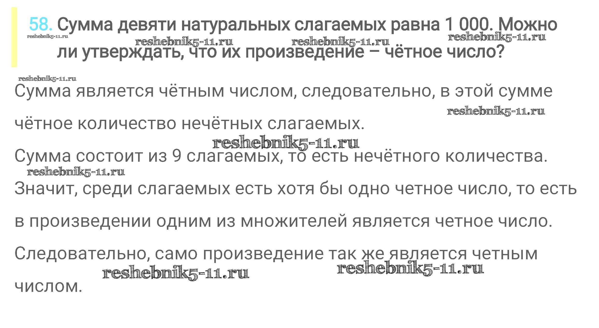 Готовая домашняя работа с ответами по Математике за 6 класс Мерзляк, Полонский, Якир Учебник Алгоритм успеха Вентана-граф 2016 ФГОС - Глава 1. Делимость натуральных чисел (упражнения) 58