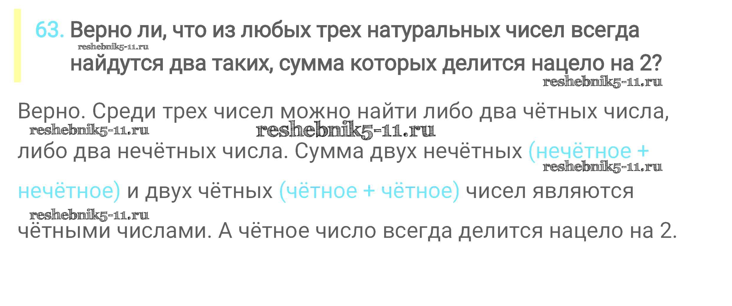Готовая домашняя работа с ответами по Математике за 6 класс Мерзляк, Полонский, Якир Учебник Алгоритм успеха Вентана-граф 2016 ФГОС - Глава 1. Делимость натуральных чисел (упражнения) 63