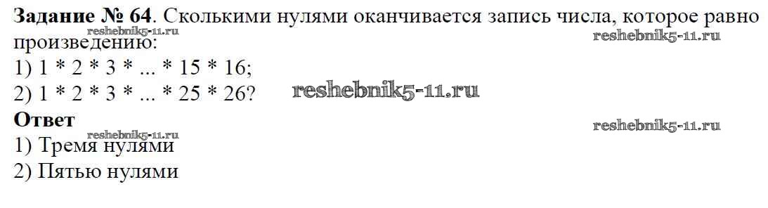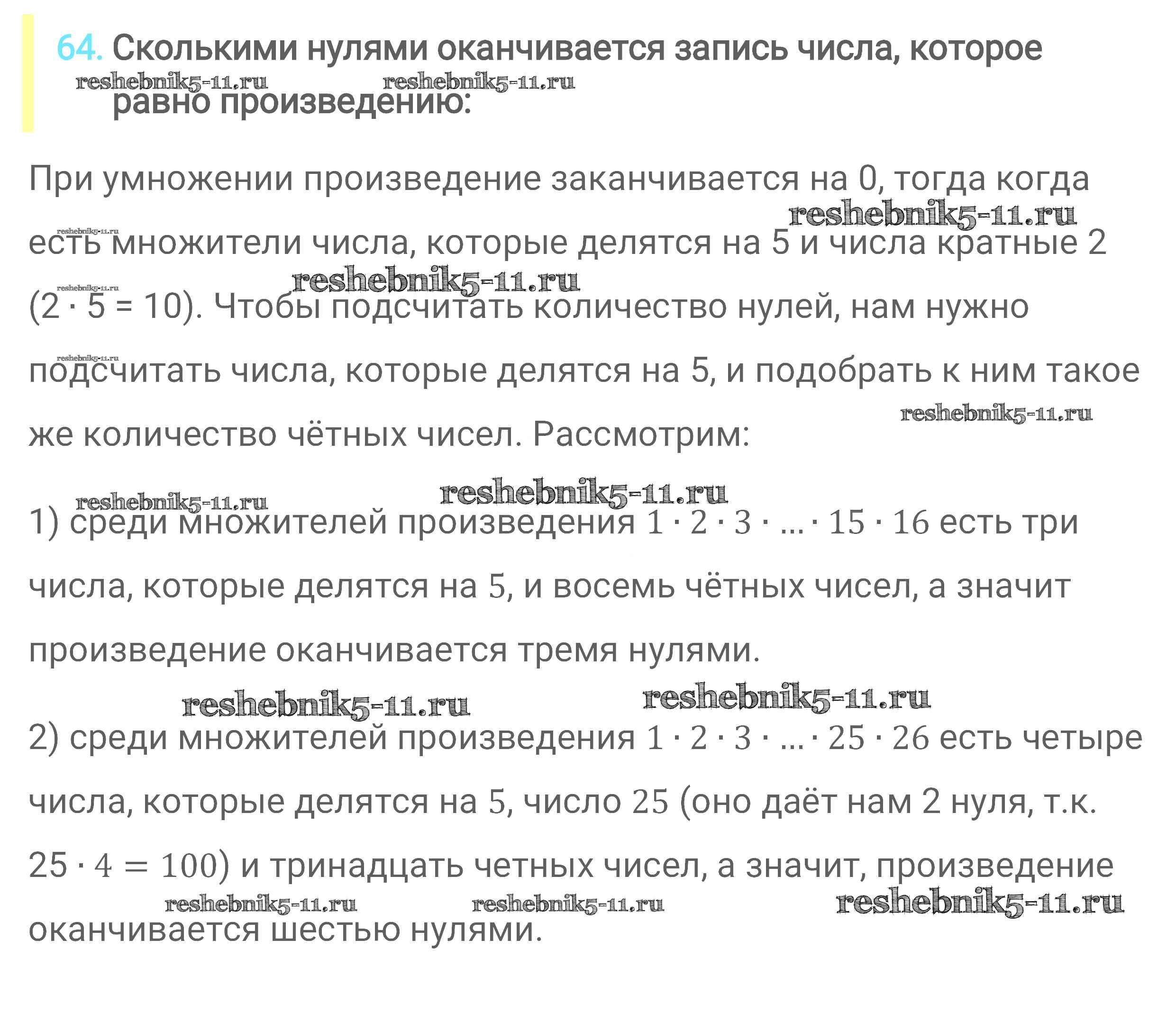 Готовая домашняя работа с ответами по Математике за 6 класс Мерзляк, Полонский, Якир Учебник Алгоритм успеха Вентана-граф 2016 ФГОС - Глава 1. Делимость натуральных чисел (упражнения) 64