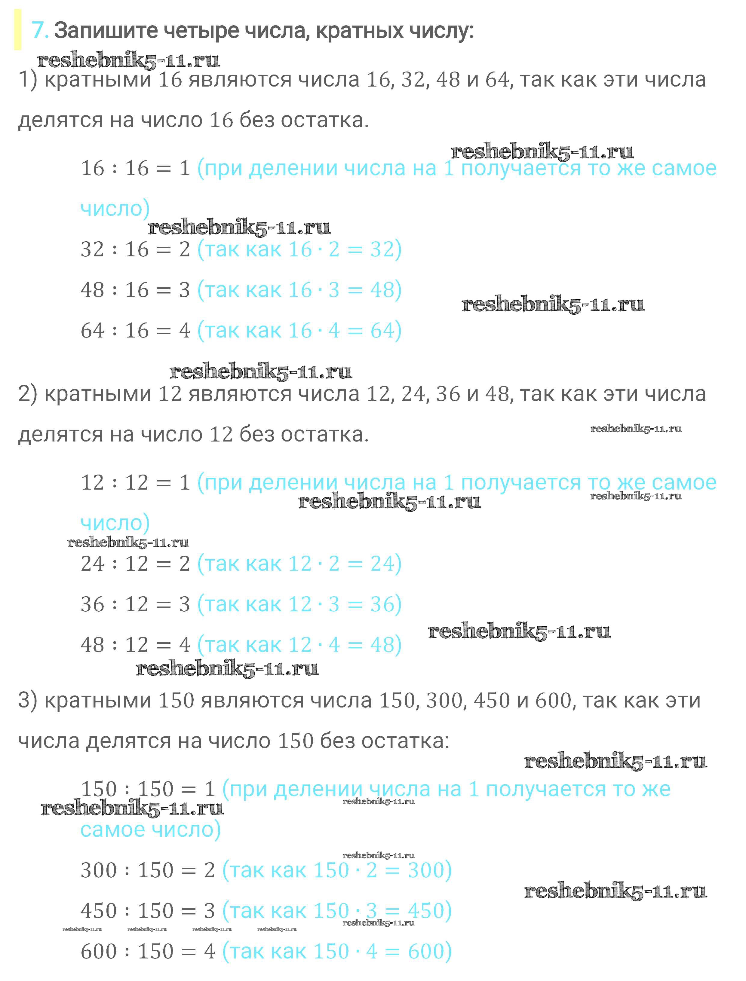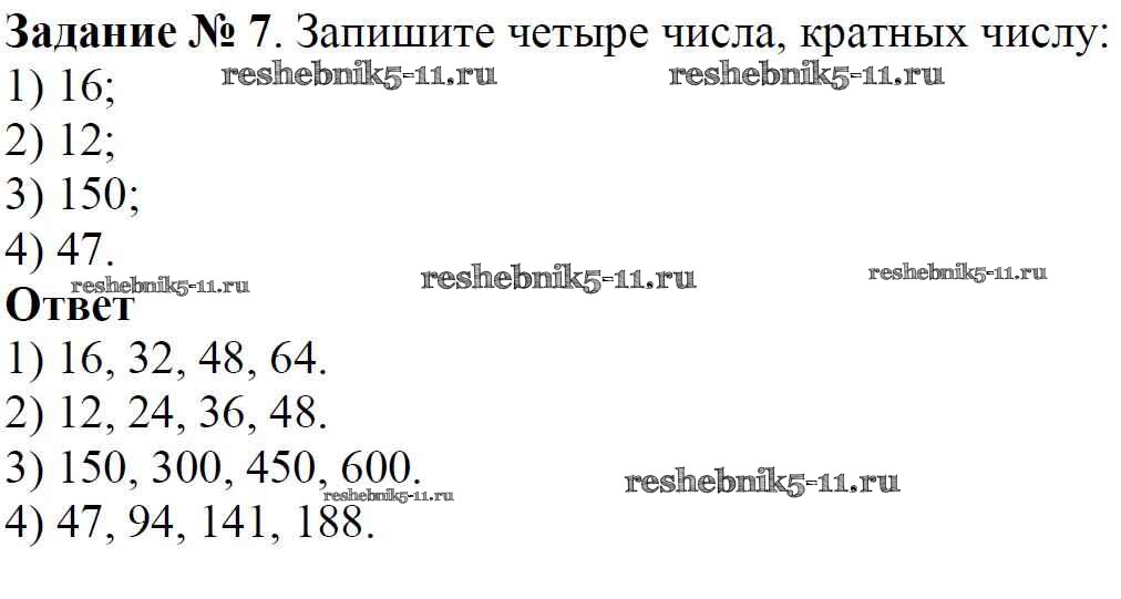Готовая домашняя работа с ответами по Математике за 6 класс Мерзляк, Полонский, Якир Учебник Алгоритм успеха Вентана-граф 2016 ФГОС - Глава 1. Делимость натуральных чисел (упражнения) 7