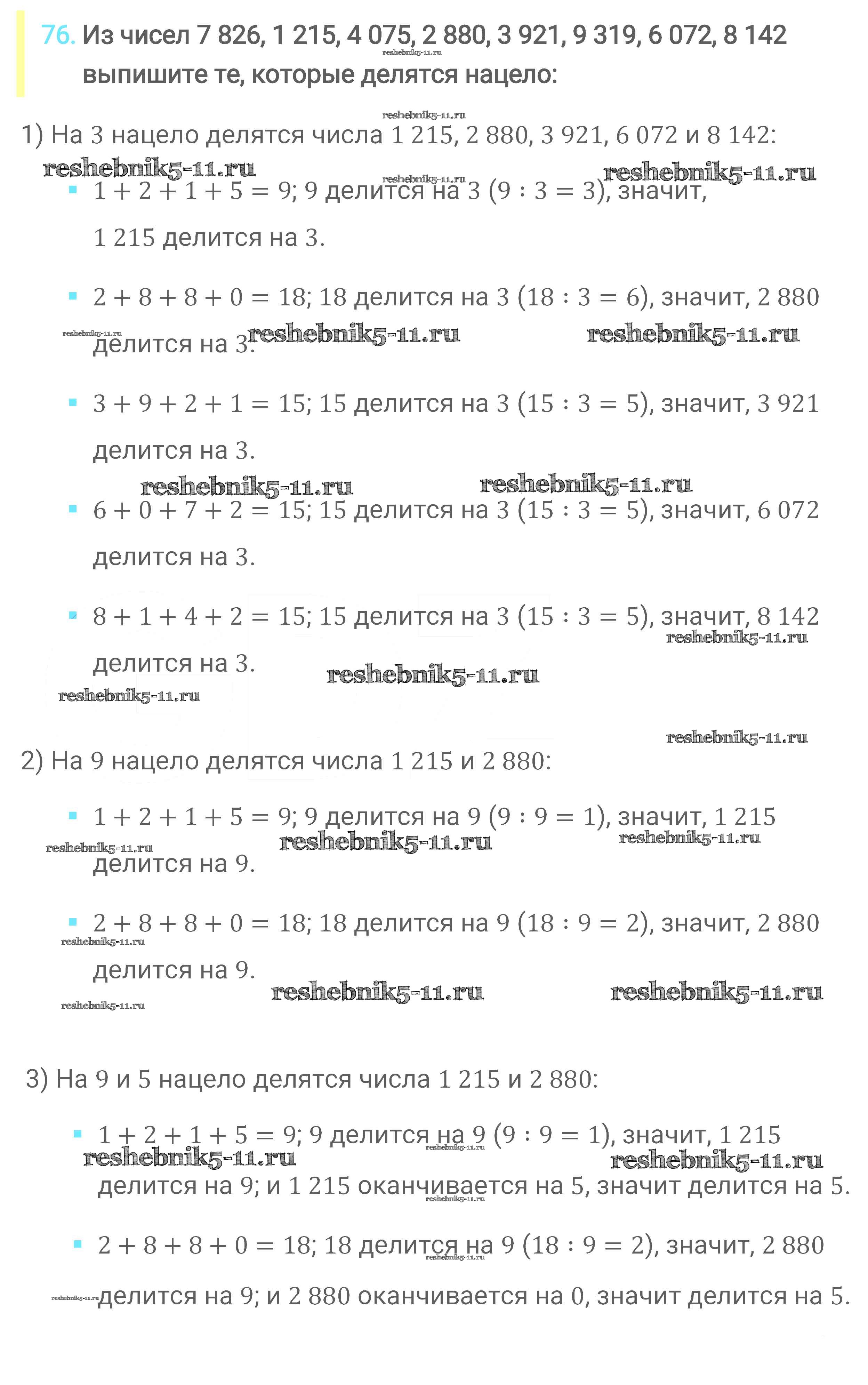 Готовая домашняя работа с ответами по Математике за 6 класс Мерзляк, Полонский, Якир Учебник Алгоритм успеха Вентана-граф 2016 ФГОС - Глава 1. Делимость натуральных чисел (упражнения) 76