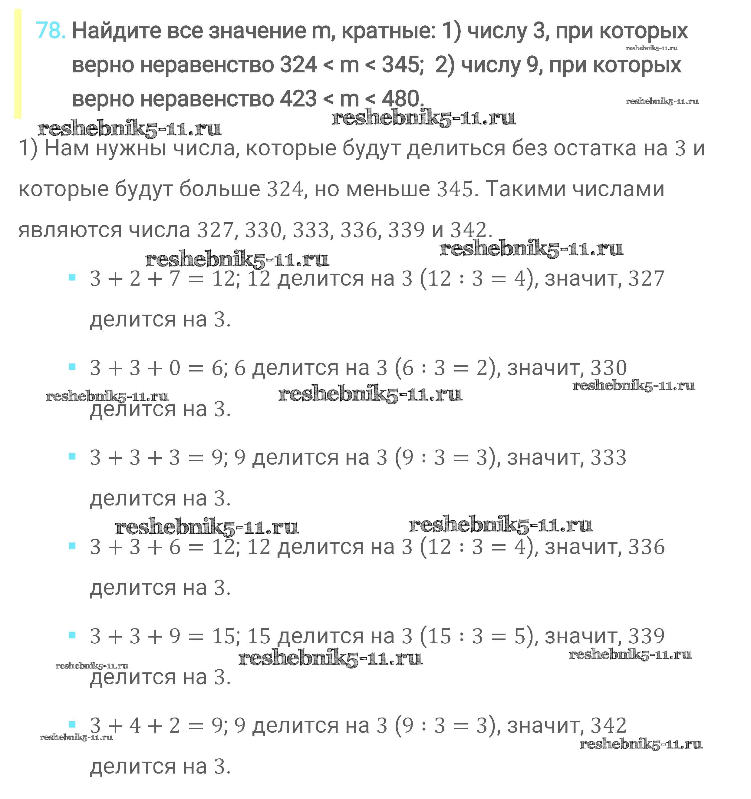 Готовая домашняя работа с ответами по Математике за 6 класс Мерзляк, Полонский, Якир Учебник Алгоритм успеха Вентана-граф 2016 ФГОС - Глава 1. Делимость натуральных чисел (упражнения) 78