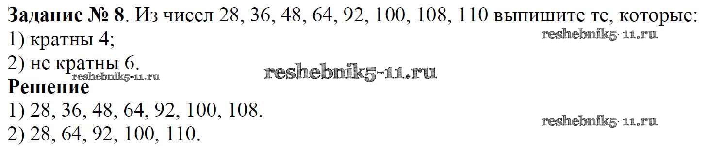 Готовая домашняя работа с ответами по Математике за 6 класс Мерзляк, Полонский, Якир Учебник Алгоритм успеха Вентана-граф 2016 ФГОС - Глава 1. Делимость натуральных чисел (упражнения) 8