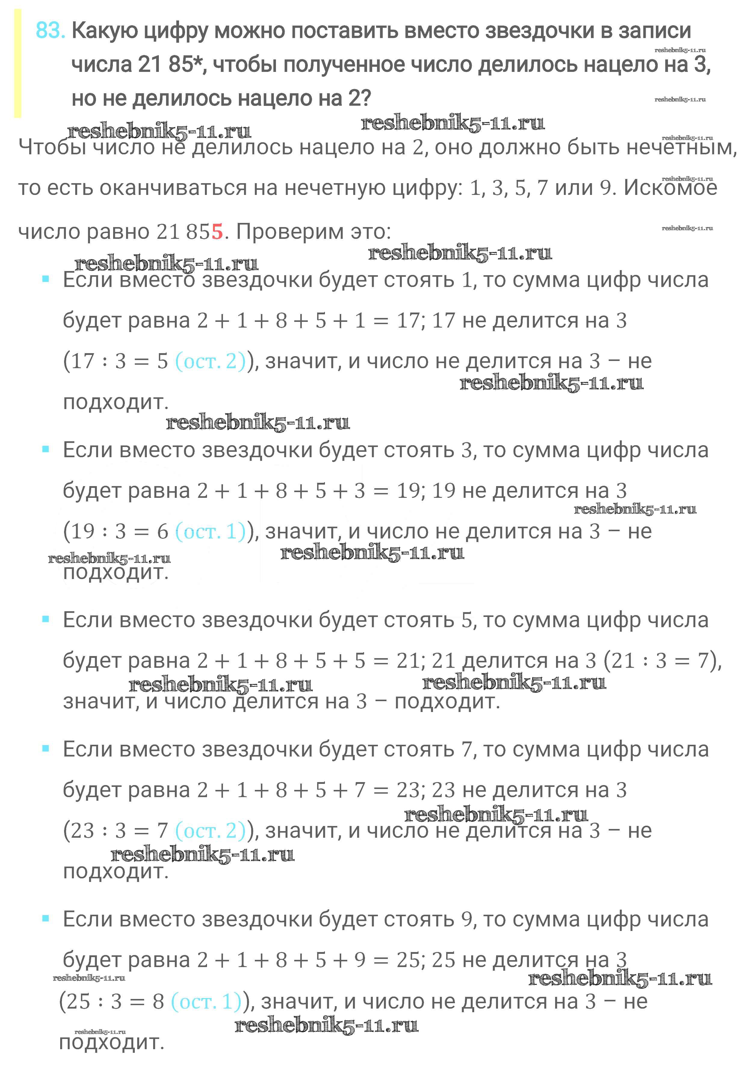Готовая домашняя работа с ответами по Математике за 6 класс Мерзляк, Полонский, Якир Учебник Алгоритм успеха Вентана-граф 2016 ФГОС - Глава 1. Делимость натуральных чисел (упражнения) 83